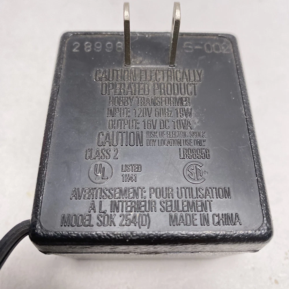 HomeLife-Like Racing Ho Scale Slot Power Supply Adapter Cord SDK 254 D 16V DC 10VA