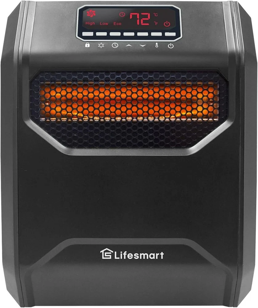 The item was shipped through US Stock, so it arrived faster than expected All 100% genuine, brand new and unopened, 24 hours message reply Brand LIFESMART GLOBAL Special Feature Tip-Over Switch, Multiple Heat Settings, Safely Designed Cabinet, Easy to Control, Overheat Protection, Washable Air Filter, Programmable Timer, Adjustable ThermostatTip-Over Switch, Multiple Heat Settings, Safely Designed Cabinet, Easy to Control, Overheat Protection, Washable Air Filter, Programmable Timer, Adjustable Thermostat Color Black Form Factor Cabinet" or "Pedestal Indoor/Outdoor Usage Indoor About this item High Powered Heating: Infrared programmable space heater designed to efficiently warm large rooms, equipped with fireproof cabinets, a spacious digital display, and a remote for enhanced accessibility