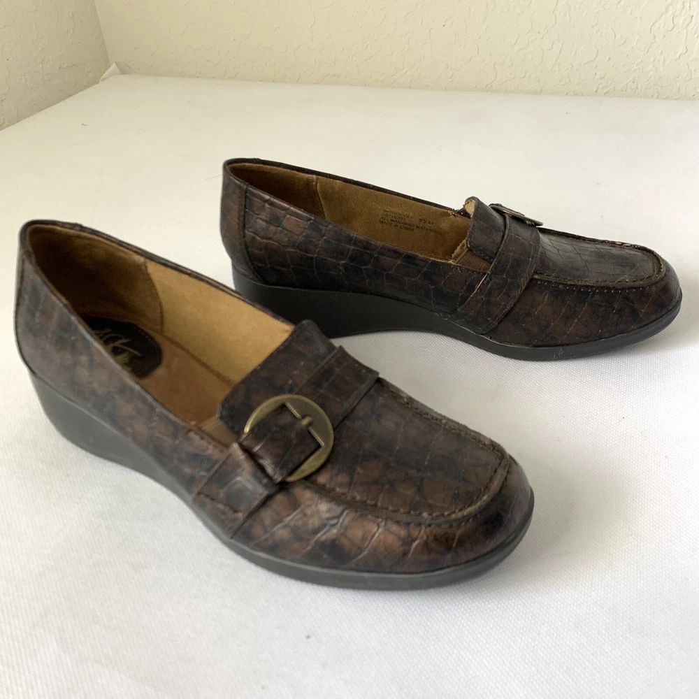 - Life Stride Monopoly Faux Leather Croc Alligator Comfort Slip On Show Brown Embossed Womens Size 6.5 See photos to c ompare your personal measurements to the garment's measurements to ensure proper fit. Excellent preowned condition. FAST Shipping! 1-3 business days. Offers welcome! Tags: everyday fashion stylish trendy classic spring summer fall winter seasons apparel comfy comfortable easy to wear classy casual favorite 14 y2k 80s 90s versatile essential career professional work clothes serious environment business casual interview teacher intern apparel employee worker workwear fashion stylist workplace dress code office attire polished mature sophisticated corporate careerwear businesscore put together light dark academia nerdy gossip girl waldorf oxford soft boy literary librarian professor refined collegiate understated
