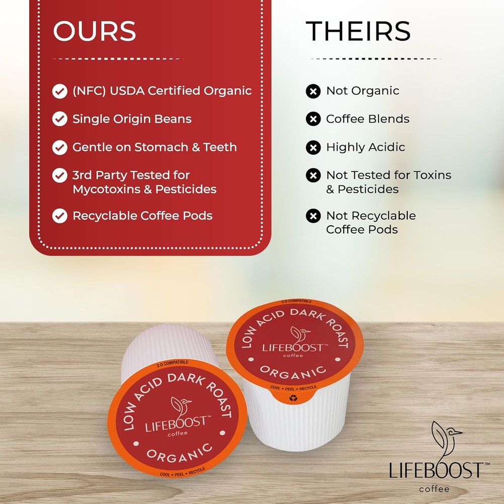 Lifeboost Dark Roast Low Acid Coffee K Cups - Single 10 Count (Pack of 1)