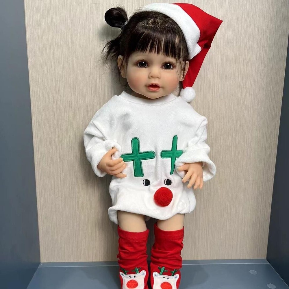 Features: 1.This baby is 100% handmade. craftwork with hand painting,just like a newborn! 2.Baby Doll Toys Teach Children How To Take Care Of Another Person, 3.Still Can Help Children Learn Invaluable Social Skills , 4.Like Communication Festival Gifts , Birthday Gifts , Children Play With Toys , Grandpa Or Grandma Accompany Doll, 5.Lovers And Collectors Collection.Exceptional Quality And Value Description: 1.Material: Full body vinyl doll, soft touch and realistic, flexible. the doll can be put into water to have bath or shower,The doll is totally poseable,head and limbs can be moved around freely. The doll is totally poseable, the head and the limbs can be moved freely. 2.Head: The head simulation of reborn doll is a real baby size, very cute and lovely. 3.Hair: rooted Fiber Hair. stable and easy to take care of 4.Eyebrows: Completely hand-drawn up so eyebrows must be treated carefully. Do not wipe them with strong force. 5.Eyes: Acrylic eyes made in Taiwan, eyes won’t blink. 6.Nose: Nostrils are open as if the baby doll is breathing. 7.Mouth: The lips seem to be a real baby's lips, tender, soft, warm and humid. You cannot help but want to kiss the baby doll. 8.Nails: Completely hand-drawn nails, redness of the nail bed and translucent nails, and even some nails life milky a half of moon shape. 9.Clothing: dress will be exactly the same as the picture.You can change the clothes for the doll by yourself, 0-3month real baby size clothes fits the doll Color Note: As the pictures show. It may be a little different due to the effect of the light & monitor setting. Doll Safety: Conforms to ASTM F963 & EN71 safety requirements of baby ages 3+. Dimensions: 22inches/55cm, real baby's size. Deviation exists due to different measuring ways. Weight: Doll Net weight is around 1.3KG, 2.1 pounds Package include: 1x Reborn Baby Doll + 1x clothes + 1x pacifier + 1x feeding bottle