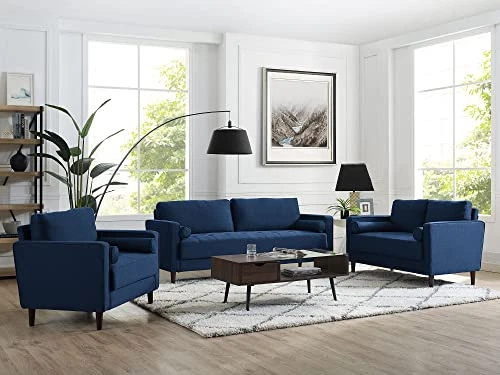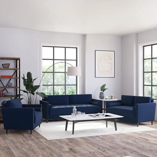 Love this chair! It's both stylish and super comfy, perfect for small spaces. The sturdy hardwood frame and soft tufted cushions make it feel luxurious, while the durable navy fabric stays looking fresh. A great blend of modern design and lasting comfort—highly recommend!