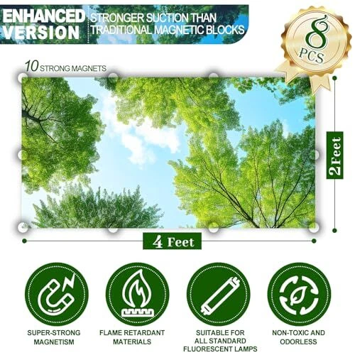 Menu 1. We require immediate payment. 2. We currently accept payment via eBay managed payments only. 3. Once payment is cleared, we will dispatch your shipment within 1-3 business days. Please refer to the "Shipping" tab for more information regarding shipping speed to your destination. Light Covers, 8 Pcs 4 x 2 FT Fluorescent Light Covers, Magnetic Light Covers for Ceiling Lights, Classroom Drop Ceiling Light Cover Florescent Led Light Shade Room School Office Decor(Forest) Product description Vivid Pictures: Comes with 8 pcs green forest style florescent light covers with fresh pattern, each piece measures 2*4 feet. The pattern is clear, and the trees reflect the blue sky vividly, like a painting. Each magnetic light cover is cut flat at the edges and sewn neatly. The fluorescent light covers for ceiling lights fit most sizes of ceiling mounted overhead lights Reinforced Magnetic Block: Each Fluorescent cloud light covers are evenly distributed with 10 magnets that keep the shade securely attached to the ceiling and will not fall off with prolonged use. The magnetic strength is summarised after strict market research and testing, the size of the magnets and the magnetic force are both aesthetically pleg and practical to sum up Reusable and Washable: This fluorescent light covers for ceiling lights is made of waterproof and heat-resistant material, very eco-friendly and reusable, even after many rinses, the colour will not fade and be damaged. It's also very easy to use, no assembly or tools required, just unfold the forest ceiling light covers decorative and stick the edges to the edge of the lamp. Tip: Make sure the bezel of the light is a material that can be attracted by magnets Ease visual fatigue: The use of ceiling covering fabric, in addition to the basic decorative role of making the room look more vibrant, can also effectively alleviate the direct glare, protect your eyesight and relieve visual fatigue. At the same time the green colour enables you to relax and relieve tension, thus helping you to think better. The lights covers also does not block the light too much and interfere with normal lighting Widely Used: This light covers ceiling light filters is very versatile, installed in the children's room ceiling can protect children's eyesight from direct light damage, installed in the classroom and office can make people more concentrated thinking, installed in hospitals and living rooms can make people feel happy, and many other occasions are all very suitable. Please contact me if you have any questions I will provide you with a satisfactory answer in a timely manner PLEASE MESSAGE US IF YOU HAVE ANY OTHER QUESTIONS, AND MANY THANKS FOR READING ALL OF THIS. Copyright ©#. All Rights Reserved.