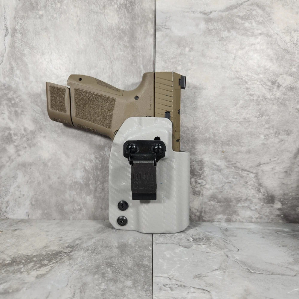 For Gun Make: CZ-USA, GLOCK, Heckler & Koch, Ruger, SIG SAUER, Smith & Wesson, Springfield Armory, Taurus, Canik, Shadow Systems Level: Level 1 Brand: Tomlin Holsters Carry Location: Appendix, Inside Waistband (IWB) Type: Concealment Holster For Gun Type: Pistol Attachment Type: Clip Material: Carbon Fiber, Kydex Country/Region of Manufacture: United States