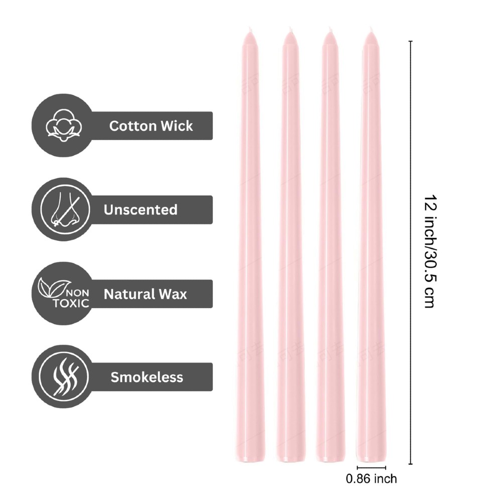 Light Pink 12-Inch Taper Candles Set of 4 Unscented 3/4 Diameter