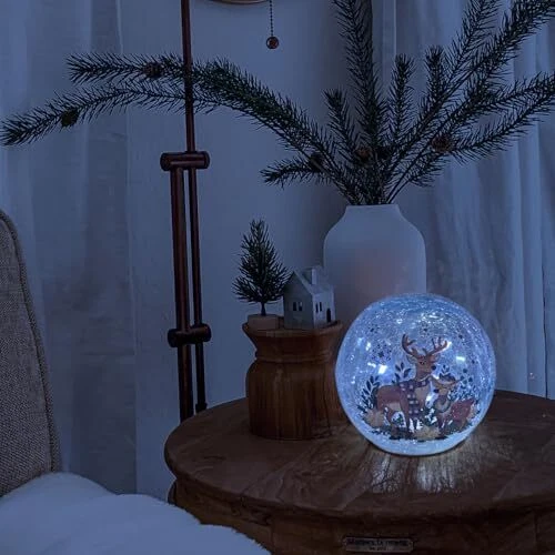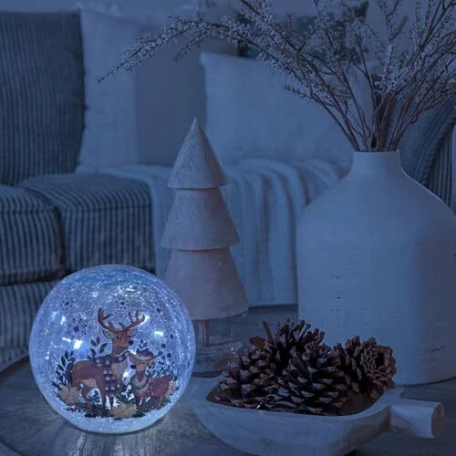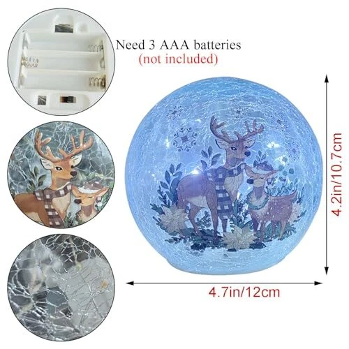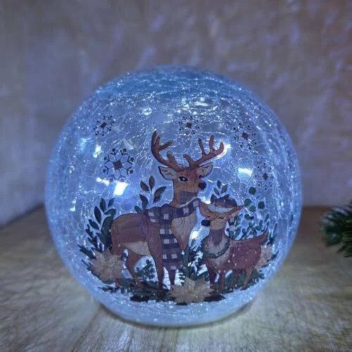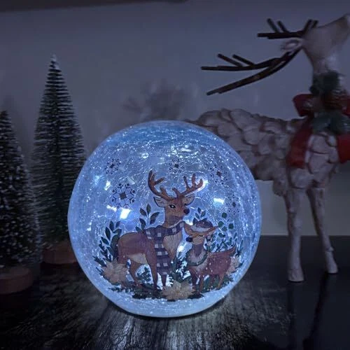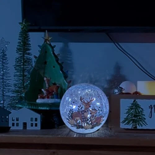 Light Up Christmas Table Decor, 4.72'' Reindeer Crackled Glass Deer Globe