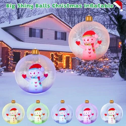 30 Days Return Policy Fast Delivery Trusted seller Light Up Inflatable Christmas Snowman Ball, 24 Inch Large Inflatable Outdoor Decorations Balls, Christmas Xmas Blow Up Ball with 13 Color LED Light for Yard, Lawn, Pool Decorations Product Description 【???????? ?????????】Our inflatable Christmas ball is made of PVC material, tough and practical, it is effective against the elements and can accompany you winter after winter. Innovative dual safety nozzle system design ensures fast and stable inflation experience, easy to use. With IP66 advanced waterproof protection, it will bloom peacefully even on snowy winter nights, adding long-lasting sparkle to your Christmas decorations. 【???????? ????? ??????????】The giant light up Christmas inflatable ball comes with subtle accessories that take holiday decorating to a new level. It can easily display brilliant lights - 13 exquisite gradient dreamy shades, making every moment of light and shadow change an unrepeatable and wonderful moment, awakening every surprise and expectation in winter. 【????????? ??????????】To adapt to various terrains and environments, the 24 inch light up PVC inflatable snowman ball is equipped with 2 strong ground stakes and 2 nylon ropes up to 27.5 inches long, which can be easily secured to dirt, gravel, and lawns. Hanging holes design gives you unlimited creative layout possibilities, you can hang it from tree branches, balconies or ceilings to create a unique landscape suspended in the air. 【?????????? ??? ???】First, open the inflation hole of the blow ups christmas decorations and slowly inflate it to the proper size. Next, unscrew the LED light unit and remove the white insulating piece inside the light. Finally, install the LED lights properly on the bottom of the inflatable Christmas yard decoration ball. 【???? ????? ?? ???????????】Our Christmas inflatable ball is ideal for patio, garden, outdoor tree, lawn, porch, pool, balcony, Christmas party, etc. It is not only the highlight of outdoor decorations, but also can be used as a cozy presents to bring surprises to your family members, friends, neighbors, and co-workers. The vibrant colors and sharp details that bring the magic of Christmas to life, these are going to be great for decorating with come Christmas time. Shipping Returns Payment Shipping Shipping is FREE to all addresses other than APO/PO boxes in the lower 48 states. All our stock ships from US-based warehouses. Shipped via USPS or UPS (depending on location and package weight) Unless stated otherwise, all orders will ship within 24-72 hours of your payment being processed. Check our feedback to see the great reviews of FAST shipping we offer. Returns As our valued customer, we will do our best to make sure the product you receive arrives to you on time and as expected. If you are not satisfied with your purchase, please contact us within 30 days of receiving your order to process a return. Payment We currently accept payment via eBay managed payments only. Once payment is cleared, we will dispatch your shipment within 1-3 business days. Please refer to the "Shipping" tab for more information regarding shipping speed to your destination.
