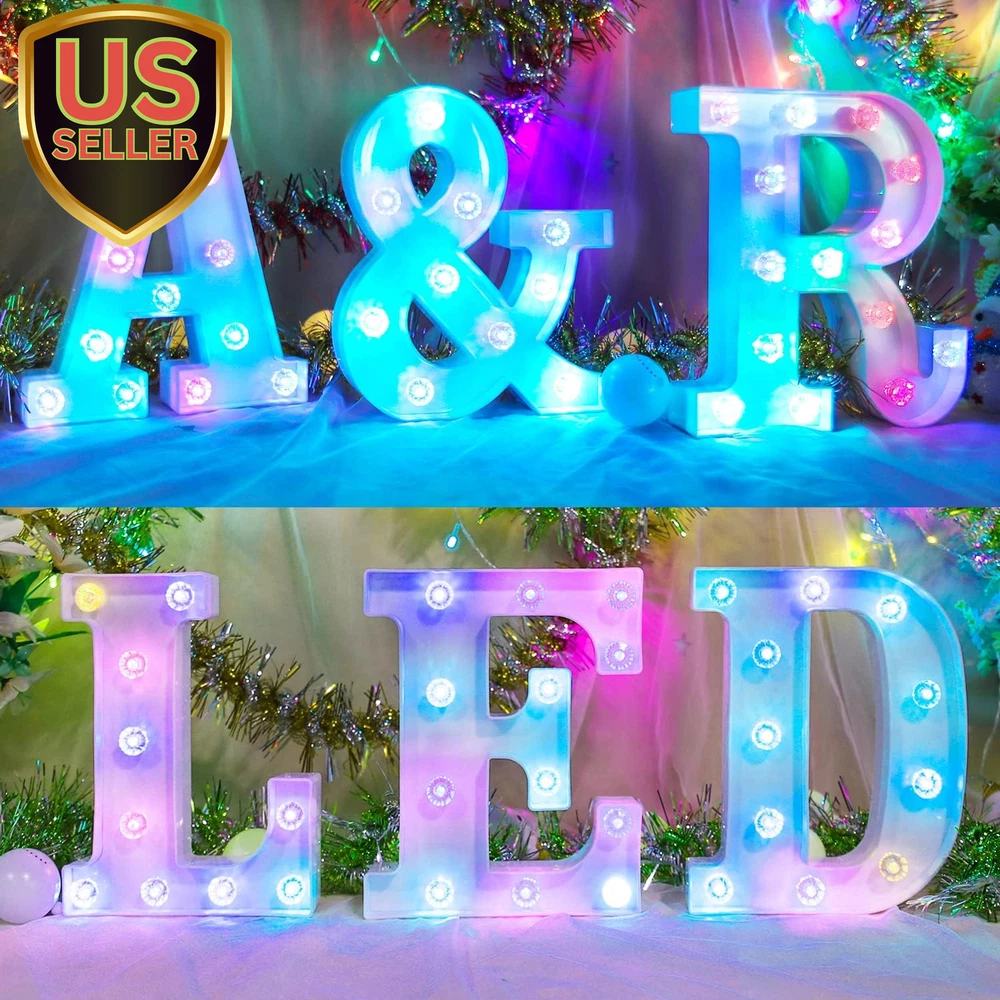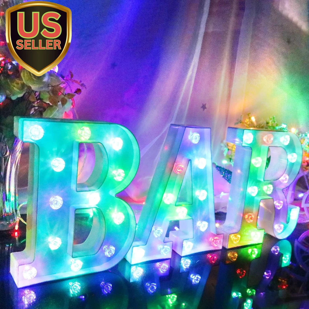 Store New Arrivals Add to Favorite View Feedback Contact Light up Letters Letter Lights - Colorful LED Letters Lights Alphabet for Romantic Valentines Day Night Lights Wedding Birthday Party Home Bar Decor- (Colorful A) Description Light Source Type LED Item model number WP-1 Style Alphabet lamp-A Number of Items 26 Power Source Battery Powered Pattern Letter A Number of Light Sources 1 Control Method Touch Switch Type Touch Batteries Included? No Lighting Method LED Lamp Type Mood Light Number of Pieces 26 Room Type Office, Living, Bedroom, Nursery Finish Unfinished Installation Type Decoration Product Dimensions 1.85"D x 8.07"W x 8.8"H Material Plastic Efficiency High Finish Type Unfinished Specific Uses For Product Decoration Included Components Bulb Indoor/Outdoor Usage Indoor Bulb Base Flanged Water Resistance Level Not Water Resistant Batteries Required? Yes Item Weight 202 Milligrams Connectivity Technology IR Special Features No need for hand-held Special Feature No need for hand-held Shade Height 8.8 Inches Part Number WP-1 Mounting Type Free Standing, Wall Mount Color Alphabet lamp-A Is Cordless? Yes Base Material Plastic Shape Heart Voltage 3 Volts (DC) Recommended Uses For Product Decoration Shade Material Acrylonitrile Butadiene Styrene Size mini size 【Safety and Energy Saving】Made of advanced LED electronic device materials, non-toxic and durable quality materials designed to withstand heat and short circuits, making it ideal for safe manufacturing. No burns after long time use, safe to touch. No sharp parts, also suitable for children to use 【Less heat】LED is a more advanced cold light source, it is not like incandescent and fluorescent lamps like radiation a lot of infrared and ultraviolet light, almost no incandescent lamp like the current heat effect, will not be affected by thermal expansion and contraction. It will not lead to yellowing of the bulb, will not accelerate the aging of the lamp, and will not have a greenhouse effect on the surrounding environment 【Easy to use】Powered by 2 AA batteries (not included), no wires needed, when you put this light on a table, desk, shelf, it is the perfect accessory for your home. Also perfect for your nursery, office, gazebo and bedroom, suitable for wedding party, Christmas, New Year, birthday party, festival, bar decoration. etc 【Great Home Decor】 This letter light can be placed in the bedroom to add to the celebration, and it's ideal for parties when you put it in the living room and bring the bedroom to life. Also perfect for parties Light up your party with colorful letter lights to add atmosphere and excitement to the room 【Spell out imagination】 The 26 letters plus & numbers offer endless possibilities for creating messages. Spell out your favorite name or phrase with these beautiful light-up alphabets, such as "Bar" in a wine rack, "LOVE" at a wedding or add an acronym to a child's room Product Description Light up your house easy to place LED lights do not heat up after prolonged use. Plastic case, heat resistant and safe. The colorful LED diamond letter lights can also be displayed individually. home decoration Perfect combination of bright white panel and colorful lighting Definitely the ideal home decoration. There are switches behind each of the marquee letters that you can turn on for battery power wall decorations no big no small just right Every inch is perfect. During your party or celebration, the color changing letter lamp can be hung on the wall to give the room more atmosphere (with a keyhole slot on the back for easy hanging DIY Combination LED Decorative Lights Add Warm Atmosphere To Home And Parties decorative function Spell out any name or phrase you like with these beautiful glowing letters It can also be used as a climax to your weddings, parties, special events, etc. to grab everyone's attention. Portable and versatile Light up your favorite text on special occasions, events or home decor Perfect for home, birthday parties, outdoors, bar, cafe decor and more. High Quality - Made of non-toxic ABS+PP material, strong and beautiful and not too heavy DIY COMBINATION - 26 Alphanumeric Character LED Lights can be freely combined into Love you, U&M, HOME, MARRY ME, etc. Let your imagination run wild. bright colors No wires are required when you place this light on a table, or shelf. It is very convenient and you can put it anywhere you want without worrying about the power control Hole hook on back There are hooks behind each letter, you can easily hang them on the wall or place them on a table or elsewhere Battery powered Lights up with just 2 AA batteries Newest design Unlike the common letter lamp logo forms, this letter with the latest design logo is just as sparkly. Not only unique, but exquisite Vibrant colors Hole hook at the back ON/ OFF switch on the back. Diamond design