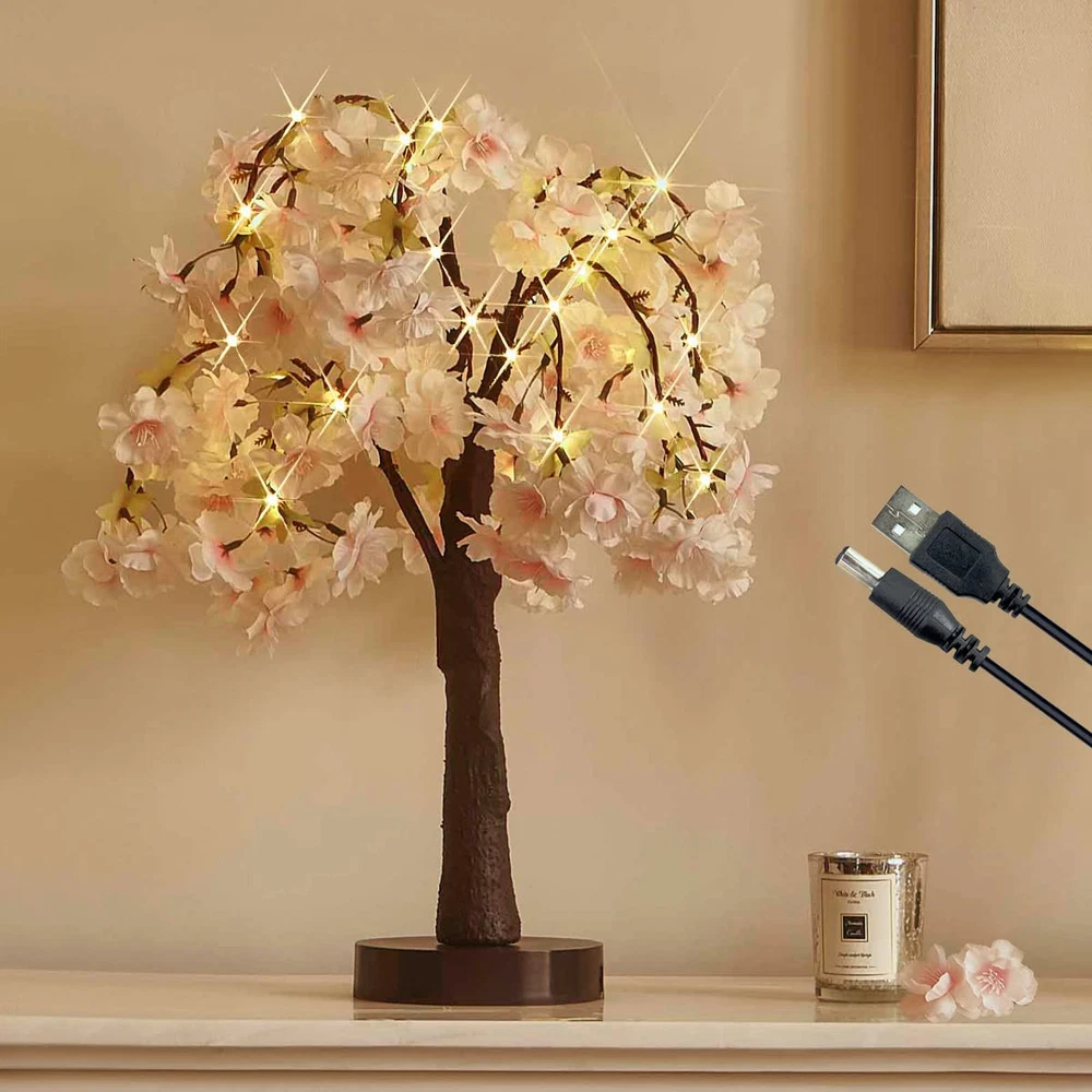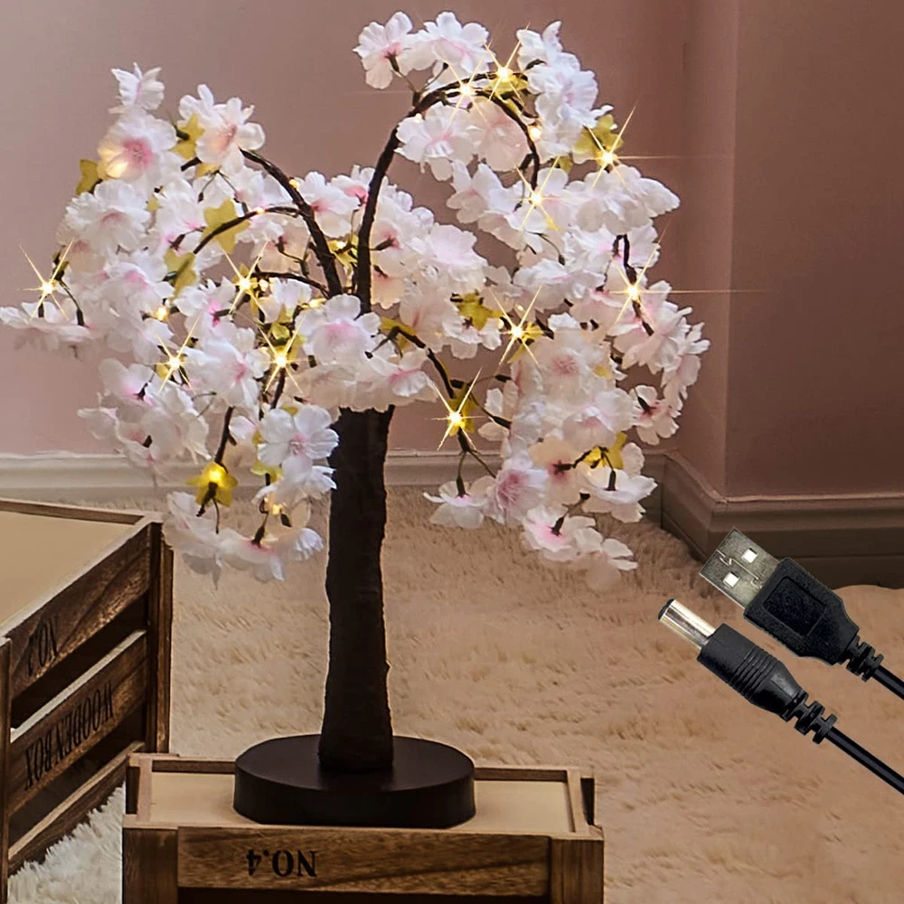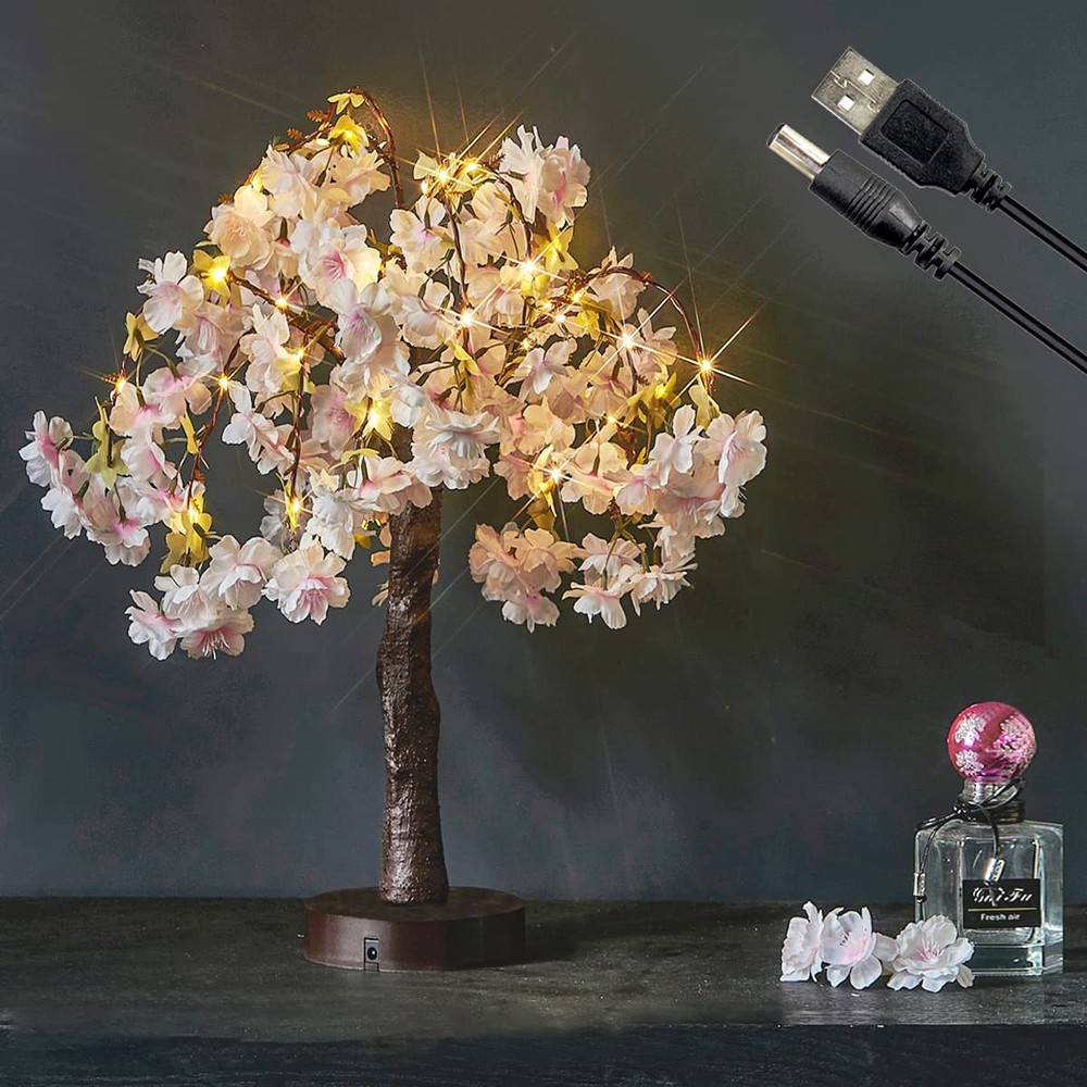 ❀LED Cherry Bonsai Tree: 2022 NEW ARRIVAL flower tabletop tree dotted with 40L fairy lights,18in tall size is a perfect decoration for wedding,holiday party and table centerpiece ❀Timer Function: With a built-in auto-timer, this table top sakura tree lights up at the same time every day, runs for 6 hours and then turns off automatically for 18 hours.No need to remember to turn it on every night. ❀Realistic Handcraft: Lifelike bark texture crafted on the tree trunk (NOT just tape wrapped),and pink flowers have realistic veining and detail,is a perfect decorative artificial tree lights. ❀Two-way Power: ① Works with 3 AA Batteries.(Battery NOT included)② Works with a corded USB charger.(Charger NOT included), it works with 4.5V or 5V charger plug. ❀Bendable Branches: Pliable and sturdy branches make it easy to shape the lighted inside tree as your wish.like japanese decor