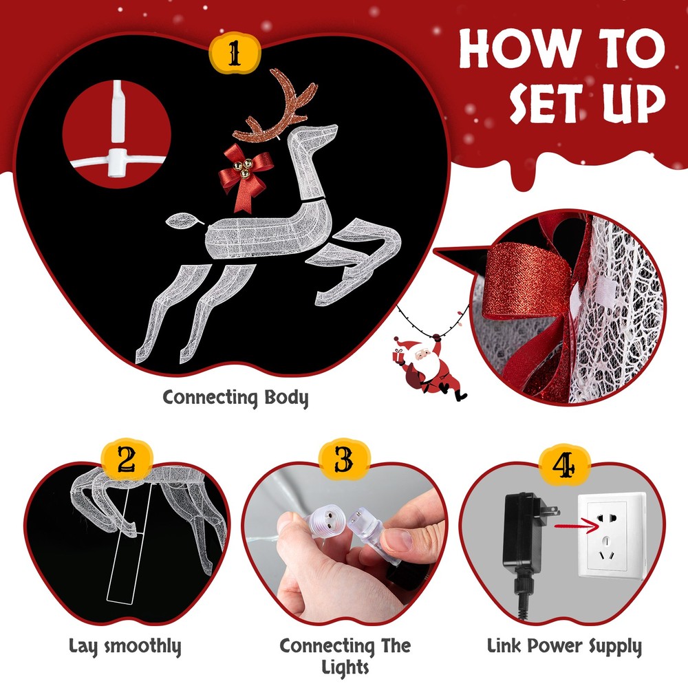 listing template VISIT OUR STORE SIGH UP FOR EMAIL Lighted Christmas Decorations Reindeer & Sleigh Deer Set for Indoor Home Outdoor 3-Piece Lighted Set of 2 Reindeer & Sleigh, Weather Proof Christmas Outdoor Decorations with Pre-lit 270 LED White Lights and Stakes for Xmas Outdoor Holiday Indoor Decor Lighted Holiday Displays, Whi Intr oductions: This charming 3-Piece Lighted Set of 2 Reindeer & Sleigh is the perfect addition to your holiday décor. Featuring two reindeer pulling a santa's sleigh, this set is beautifully adorned with festive bowknots and sparkling glitter, capturing the magic of the holiday season. With its durable, weatherproof design and warm LED lights, it adds a cozy, enchanting glow to any indoor or outdoor space. Easy to assemble and store, this reindeer set will bring joy and festive cheer to your home year after year. Features: 1. Charming Reindeer & Sleigh Set: This delightful set features two reindeer pulling a santa's sleigh, each detailed with a festive bowknot and glistening glitter for added holiday sparkle. Loved by both kids and adults, this reindeer and sleigh set is sure to bring warmth and festive joy to your outdoor or indoor Christmas decorations. 2. Eye-Catching LED Lights: Pre-lit with 270 white LEDs, these reindeer glow beautifully in the night, creating an inviting holiday atmosphere. The well-placed LED lights make the reindeer a stunning focal point for your Christmas display, both day and night. 3. Weather-Resistant and Sturdy Build: Made from a durable, rustproof metal frame with waterproof fabric, the reindeer set is built to withstand wind, rain, and snow. The included ground stakes provide extra stability, ensuring your decorations stay secure in winter weather. 4. Easy Assembly & Storage: This collapsible reindeer set can be set up in minutes, allowing you to enjoy your festive display without hassle. The lights are pre-installed, simply connect the wires and plug them in to watch them come to life. 5.Perfect Holiday Decor for Indoor & Outdoor: Whether placed indoors near your Christmas tree, on the porch, or outdoors in the yard, this lighted reindeer set enhances any holiday setting. Perfect for holiday parties, weddings, or as a festive yard display, these reindeer bring elegance and a joyful touch to your celebrations. Specifications: 1. Overall Dimensions: (83 x 10.8 x 39.4) in / (211 x 27.5 x 100) cm 2. Number of Lights: 270pcs 3. Light Color: White Package Includes: 1 x 2 Reindeer & Sleigh Set 1 x Set of Ground Stakes Shipping Policy 1. Ship worldwide from New Jersey by reliable shipping companies -- USPS, UPS, FEDEX, DHL, etc., and only to VERIFIED PAYPAL ADDRESS. Transport Delivery ETA. Package handling only takes 1 business day at our warehouse, so please make sure entering correct payment and shipping information before checking out. Once your payment is completed, we are not going to accept any more changes to your order. 2. International Buyers – Please Note: a. Import duties, taxes and charges are not included in the item price or shipping charges. These charges are the buyer's responsibility. b. Please check with your country's customs office to determine what these additional costs will be prior to bidding/buying. 3. Please check your shipping address carefully before checkout, it can't be changed if order completed. 4. Orders placed on weekend will be shipped within 2 days.Notification of shipment with tracking number will be sent to buyers. 5. Standard shipping: 2-7 business days Expedited Shipping: 2-3 business days One-day Shipping: 1 business day International shipping: Varies 6.Ship within 1 business day once payment completed. Notification of shipment with tracking No. will be sent to buyer. 7.We offer discounts for combine shipping. Please contact us first if you need combine shipping, and an invoice with discount will be sent to you. 8.Please allow 5 business days for delivery to US destinations on any eBay orders and 14 business days for delivery to any International destinations. We highly recommend our buyer choose priority/expess mail for international delivery which is much more stable. Return Policies 1. Refunds given only if item DOA and cannot be replaced via PAYPAL . If so, Please contact us with 5 days since you receive the item and and return to us within 30 days from the delivery date for exchange or refund. 2. If you need return, please contact our customer service representative, let us know the detailed problem and send us some pictures for confirmation. Payment Payment should be sent within 8(EIGHT) days of auction closing. Feedback If you are dissatisfied for any reason, please do not be quick to leave negative/neutral feedback. We work hard to make sure EVERY CUSTOMER 100% SATISFIED and resolve any problem for you. Work Time Work Time: Monday to Saturday About Us | Newsletter| Feedback| Contact Us Copyright © 2022 LikeDeal. All rights reserved. 无标题文档 Lighted Christmas Decorations Reindeer & Sleigh Deer Set for Indoor Home Outdoor 3-Piece Lighted Set of 2 Reindeer & Sleigh, Weather Proof Christmas Outdoor Decorations with Pre-lit 270 LED White Lights and Stakes for Xmas Outdoor Holiday Indoor Decor Lighted Holiday Displays, Whi Intr oductions: This charming 3-Piece Lighted Set of 2 Reindeer & Sleigh is the perfect addition to your holiday décor. Featuring two reindeer pulling a santa's sleigh, this set is beautifully adorned with festive bowknots and sparkling glitter, capturing the magic of the holiday season. With its durable, weatherproof design and warm LED lights, it adds a cozy, enchanting glow to any indoor or outdoor space. Easy to assemble and store, this reindeer set will bring joy and festive cheer to your home year after year. Features: 1. Charming Reindeer & Sleigh Set: This delightful set features two reindeer pulling a santa's sleigh, each detailed with a festive bowknot and glistening glitter for added holiday sparkle. Loved by both kids and adults, this reindeer and 