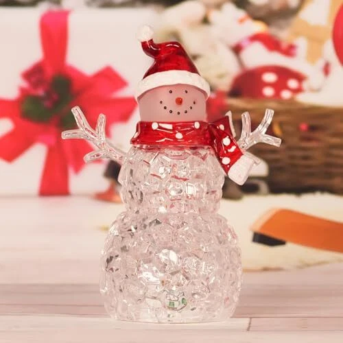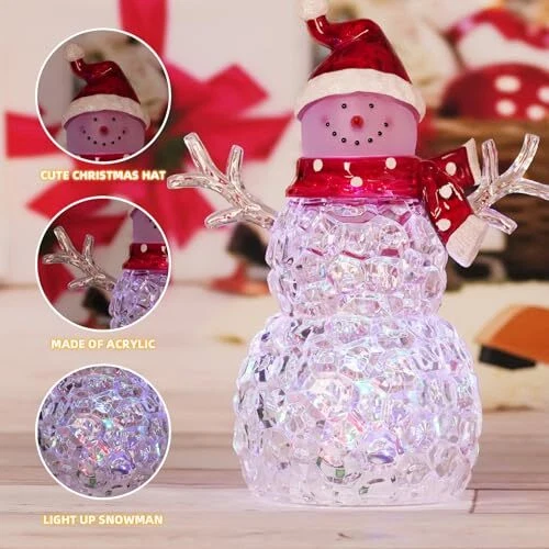 30 Days Return Policy Fast Delivery Trusted seller Lighted Snowman Figurines 9" Christmas Snowman Decorations Battery Operated Acrylic Snowman Lantern Holiday Home Decor Indoor, with Santa Hat, Scarf Product Description Snowman Christmas Decorations: The light up snowman indoor wearing a red santa hat and wrapped in a red polka dot scarf. Cute snowman statue is a perfect addition to your home holiday decorating, it will provide a joyous and festive atmosp. Material: This snowman figurines is made of clear acrylic. Simply switch on the LED lights using the button at the bottom. Night Light: The led snowman is 9 in tall. The led snowman decor can be placed on the mantel, nightstand, desktop or side table along with other festive accents to decorate your space every holiday season. Battery Operated: The snowman light requires 3 AAA 1.5V batteries(not included). Great collectible decor for Living room, Bedroom, office decoration. Holiday Gifts: The christmas home decorations is a great gift to give to any family member, friend, colleagues or neighbor for the winter season. Shipping Returns Payment Shipping Shipping is FREE to all addresses other than APO/PO boxes in the lower 48 states. All our stock ships from US-based warehouses. Shipped via USPS or UPS (depending on location and package weight) Unless stated otherwise, all orders will ship within 24-72 hours of your payment being processed. Check our feedback to see the great reviews of FAST shipping we offer. Returns As our valued customer, we will do our best to make sure the product you receive arrives to you on time and as expected. If you are not satisfied with your purchase, please contact us within 30 days of receiving your order to process a return. Payment We currently accept payment via eBay managed payments only. Once payment is cleared, we will dispatch your shipment within 1-3 business days. Please refer to the "Shipping" tab for more information regarding shipping speed to your destination.