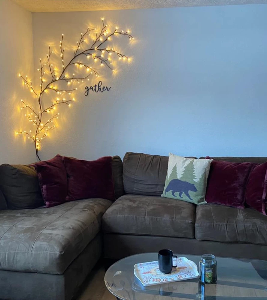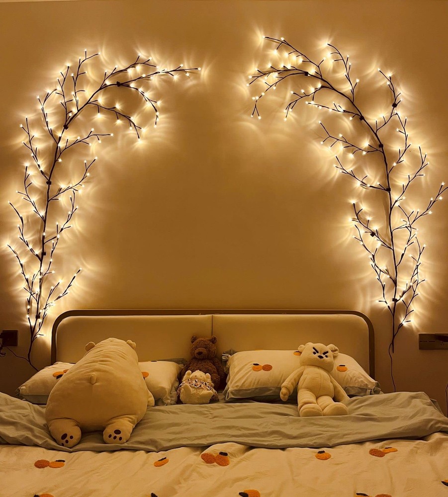 Perfect decor & mood lighting: Willow vine lights has a soft and charming style to easily create an warm ambiance. The vines with lights can be used for any events, festivals, living room decor or just in any corner in your home Very versatile: The lighted branches can be bend and they keep their shape.so you can able to be creative to complete the lighted wall art to fit your christmas decorations indoor or plant decor for bedroom Unique faux willow vine: The wall decor lights are flexible enough and sturdy too to great way to add character and incorporate it with your design Fairy decor: The lighted vine has a six foot long cord and a power supply,lighted willow tree is about 7.5Ft long with 144 LED lights that distributed on 18 branches Installation suggestion:The willow twig vines lights does NOT come with stand or item to adhere to wall,You can use mini-clips,numerous thumbtacks,suction cups,rope hooks, straps, etc.