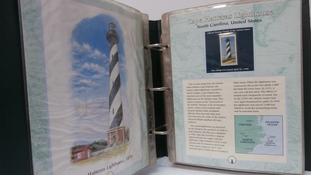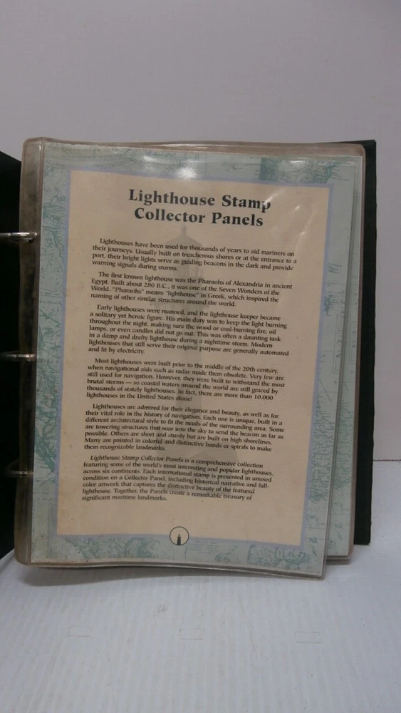 You are bidding on: Lighthouse Album Stamp Collector Panels in Album 30 Different MNH Stamps Description Condition: In vintage condition. This is a Lighthouse Album Stamp Collector Panels in Album 30 Different MNH Stamps There are 30 different new stamps of lighthouses. On each page is an art photo and information. These are all in a green album. ***************************************************************************************************** PLEASE READ: I buy mostly estates, close outs, shelf pulls, and auction items. As the history of the item is not always known. I will describe all of my items listed to the best of my ability, if there are any flaws to the item it will be noted in the listing and photos of the flaw shown. At times I may miss a flaw, as I am only human. Please contact me and I will make it right and make sure that you are happy with you interaction and purchase from Big Man Tim. See photos for details and ask all questions before purchasing. "FREE SHIPPING" Thank you for shopping in my store. Check out the other items in my eBay Store! HAPPY BIDDING 011025/TM warehouse