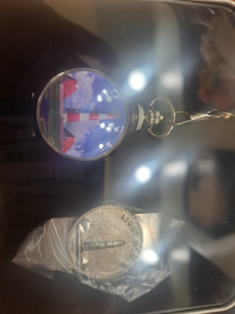 Lighthouse Pocket Watch & Clip Holder Silver Tone