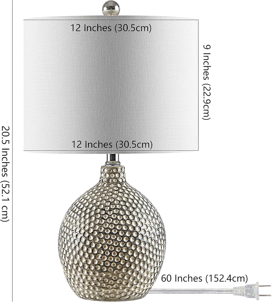 Wattage: 100 watts Age Range (Description): Adult Shape: Drum Batteries Included?: No Special Feature: Corded Batteries Required?: No Power Source: AC/DC Size: 19 Inch Style: Contemporary Finish: Distressed Warranty Description: No warranty. Lighting Method: Downlight gtin13: 726084124059 Shade Material: Cotton Number of Pieces: 1 Item Weight: 4 Pounds Included Components: Includes Hardware Global Trade Identification Number: 00195058075282 UPC: 726084124059 Pattern: Solid Base Material: Ceramic Part Number: TBL4270A Brand: Does not apply Is Waterproof: False Shade Color: White Lamp Type: Table Lamp Material: Ceramic Item model number: TBL4270A Type: Does not apply Room Type: Office, Living Room Number of Light Sources: 1 Special Features: Corded Color: Ivory Item Package Quantity: 1 Number of Items: 1 Switch Type: Touch Finish Type: Distressed Specific Uses For Product: Living Room, Office Installation Type: Tabletop Light Source Type: LED Efficiency: Decent Energy Efficiency Country of Origin: China Recommended Uses For Product: Indoor Connectivity Technology: USB Mounting Type: Tabletop Control Method: Touch Product Dimensions: 12"D x 12"W x 19"H