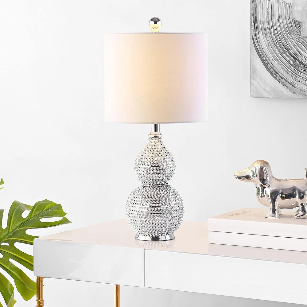 Store New Arrivals Add to Favorite View Feedback Contact Lighting Collection Clarabel Silver Chrome Studded 20-Inch Bedroom Living Room Home Office Desk Nightstand Table Lamp (LED Bulb Included) Description Light Source Type 1 Age Range Description Adult Style Scandinavian Base Diameter 1E+1 Inches Number of Items 1 Power Source Corded Electric Number of Light Sources 1 Material Type Resin Is Electric Yes Lighting Method LED Finish Types Silver Lamp Type Table Lamp Is Product Cordless No Number of Pieces 1 Item Shape Round Room Type Office, Living Room Product Dimensions 10"D x 20"W x 20"H Model Number TBL4042A Installation Method Tabletop Finish Type Silver Specific Uses For Product Decoration, Living Room, Bedroom, Office Brightness 550 Lumen Control Method Touch Item Weight 3 Pounds Connectivity Technology USB Special Features Corded Mount Type protruding Bulb Base E26 Shade Color Off-white Color Silver Item Dimensions D x W x H 10"D x 20"W x 20"H Indoor Outdoor Usage Indoor Base Material metal,resin Global Trade Identification Number 00889048352322 Is Waterproof False Voltage 120 Volts Recommended Uses For Product Table Lamps Shade Material Fabric Included Components Table Lamp Wattage 9 watts Switch Type Rocker Resin This table lamp will add a fresh look to any room This silver table lamp features a off-white shade Crafted of resin with a cotton shade Perfect for a living room, bedroom, family room, den, library, or study For over 100 years, Safavieh has been crafting products of the higest quality and unmatched style The couture boutique of Paris’ top fashion designer was the inspiration for this chrome 20-inch table lamp. Its radiant silver finish highlights its dramatic texture complements its chrome metal detail, creating an instant focal point in any living room. ABOUT US We offer the best prices around on high quality products. Our E-store includes media such as books, movies, music and games while offering electronics, toys, sporting apparel, clothing, tools, general home, garden items and more. SHIPPING We are always working hard to ensure your package arrives as soon as possible. Please understand that some factors like weather, high postal traffic, and the performance of shipping companies are outside of our control. We offer free shipping to the lower 48 states and ship within 2 business days of payment, usually sooner. We do not accept P.O. Boxes. Please provide a physical address. For shipping outside of the continental USA, we only use eBay's Global Shipping Program.The item is shipped to KY and then sent to the rest of the world. International customers are responsible for all duties and taxes. Continue to check out in order to calculate costs for shipping the item to your country. Messages regarding eBay's Global Shipping Program MUST be directed at eBay EXCLUSIVELY. RETURNS We offer a 30-Day Return Policy on items which you are not completely satisfied with. You have the option for a full-refund or an exchange of the item. No returns are available on items shipped outside of the USA. PAYMENT We accept PayPal. CONTACT US This page content is yet to come Please ad us to your favorite seller and visit again later Thank You CUSTOMER SATISFACTION We try our very best to make sure every customer is completely satisfied. If there's a problem, message us! We're happy to help. WE ACCEPT Copyright © 2021 AutoDS. | All Rights Reserved