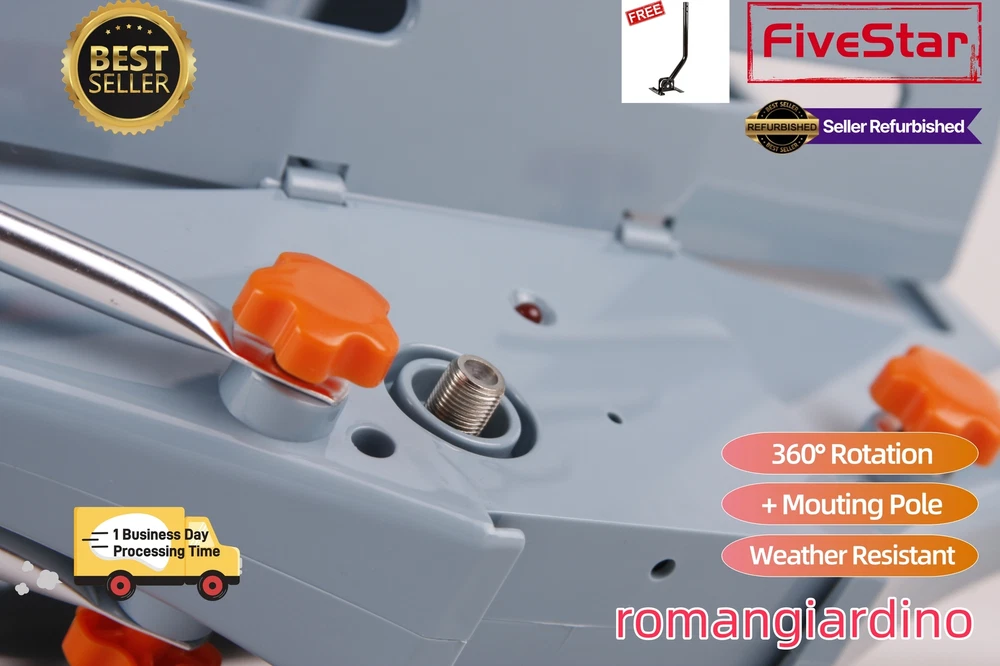 Compatible Service: For Comcast, For DIRECTV, For Dish Network, For Sirius, For SiriusXM, For XM Color: Silver Compatible Product: Base Station Radio, Portable/Handheld Radio Working Frequency: VHF(172-240Mhz)/ UHF(470-860Mhz) Compatible Brand: Universal Maximum Range: 150 miles Number of Outputs: 2 Number of Inputs: 4 Compatible Series: Universal Band: UHF, VHF, FM Year Manufactured: 2023 Material: Steel Bundled Items: Cable Indoor/Outdoor: Indoor, Outdoor Reflector Shape: Flat Directivity: Omni-Directional Dish Color: Gray Seller Notes: May show signs of use; refurbished to high standards Free HD Channels: ABC, CBS, NBC, PBS, Fox, Many More Model: Five Star FSA-5809 MPN: FSA-5809 Features: Motorized Rotation, Yes, Multi-Directional, HD TV Signal, Built-in Amplifier, Gain Booster Type: Antenna Dish Surface: Solid Size: 15 in Brand: Five Star