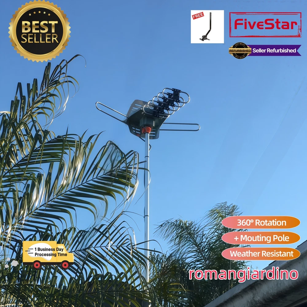 Lightning Deal 200 Mile Outdoor TV Antenna w Pole Motorized 4K OTA HDTV