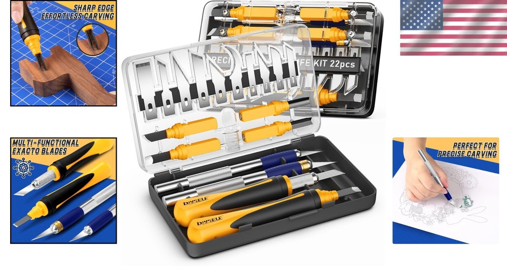 Lightweight 22-Piece Exacto Knife Set with Textured Grip for Enhanced Control ‹ › ‹ › ‹ › ‹ › ‹ › ‹ › ‹ › ‹ › Lightweight 22-Piece Exacto Knife Set Enhance Your Crafting Experience with Textured Grip for Improved Control Features: Valuable assortment with 4 versatile hobby knives and 13 interchangeable exacto blades in various shapes. All tools are safely stored in a protective plastic case, ensuring organization and accessibility. Precision knives crafted with high-quality carbon steel blades designed for strength and longevity. Lightweight metal-handle optimizes ease of use during intricate tasks. Textured grip to minimize hand fatigue and provide superior control. Limitless Applications: Perfect for a wide range of precision tasks including cutting paper, plastic, cardboard, leather, foam board, wood, and more. Ideal for DIY projects and experienced crafters alike. Why Choose Our Exacto Knife Set? This meticulously curated 22-piece Precision Hobby Knife Kit is not only about quality but also about versatility. The combination of precise blades and expertly designed handles makes it a must-have for any crafting enthusiast. Whether you are a beginner or an expert, this set is tailored to meet all your crafting needs, offering unparalleled comfort and control. Your satisfaction is our priority. If for any reason you find yourself less than delighted with your purchase, our dedicated customer service team is ready to address your concerns and ensure you have the best experience possible. Elevate your crafting projects today with this exquisite set that promises both functionality and elegance! Shipping Free & Fast Shipping - We offer free shipping to most of the USA with a normal delivery time of 3-7 days. However, due to the current situation, additional delivery time (up to 3 weeks) may be required for some items. Alternative Carriers - We may use alternative carriers (e.g. USPS, FedEx, UPS, etc.) to ensure your package arrives safely and on time. Due to the use of multiple carriers, we are unable to provide a tracking number automatically. Handling Time - Orders are processed and shipped within 1-2 business days of receiving cleared payment. Shipping Restrictions - Shipping to Alaska, Hawaii, Puerto Rico, Guam, and other US territories may incur shipping charges or delivery restrictions. Please contact us before ordering, or your order can be refunded/cancelled. State Restrictions - There may be restrictions based on your state of purchase. For example, certain items may not be shipped to California due to state regulations. Contact for Tracking Updates - If you require tracking updates or have any concerns about the delivery of your order, please feel free to contact us, and we will be happy to assist you. Return 30-Day Hassle-Free Returns - We want you to be completely satisfied with your purchase. If you are not, you can return the item within 30 days of receiving it for a full refund or exchange. Easy Return Process - To start a return, simply contact us and we will provide you with a prepaid return shipping label and detailed instructions. Restocking Fee - There are no restocking fees for returns. However, the buyer is responsible for return shipping costs if the return is not due to a seller's error. Refund Processing Time - Refunds will be processed within 5 business days of receiving the returned item in its original condition. Payment We accept all major credit cards, PayPal, and Apple Pay for your convenience. Your payment information is secure and encrypted to ensure a safe and seamless transaction. Please complete your payment within 3 days of purchase to avoid any delays in shipping. Feedback Your feedback is extremely important to us. We strive to provide the best products and customer service possible. If you are satisfied with your purchase, please take a moment to leave us a positive review. If you have any concerns or issues with your order, please contact us before leaving negative feedback. We are committed to resolving any problems and ensuring your satisfaction. Contact Us If you have any questions or concerns, please feel free to reach out to our customer support team. You can contact us through the eBay messaging system. We are available Monday to Friday, 9:00 am to 5:00 pm EST, and we will do our best to respond to your inquiry within 24 hours. Buy it now and enjoy a pleasant shopping experience! UPC: Not Set Model: Exacto Knife Set Unit Quantity: 0.2 kilograms Set Includes: Exacto Knife Set,hobby knives,exacto blades Material: Carbon Steel,Metal,Plastic,Stainless Steel,Wood Food Compatibility: Universal Features: Light Weight,Easy to Use,Precision Control,Textured Grip,Durable Design Brand: Unbranded Type: Exacto Knife Set Number of Items in Set: 22 Color: Yellow Country/Region of Manufacture: Not Set MPN: Not Set Handle Material: Wood Blade Edge: Straight Blade Length: Not Set Making Method: Not Set Manufacturer Warranty: Not Set Unit Type: Unit Personalize: Not Set