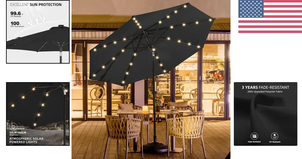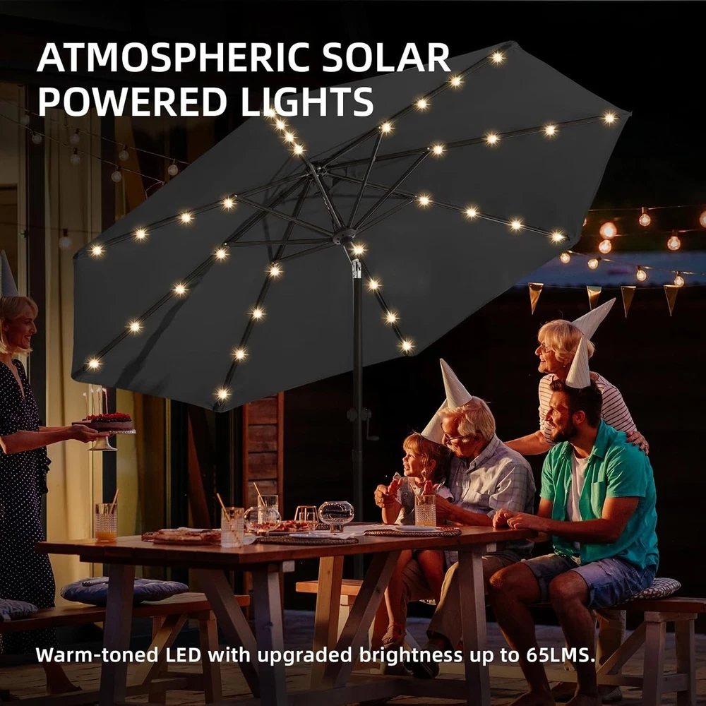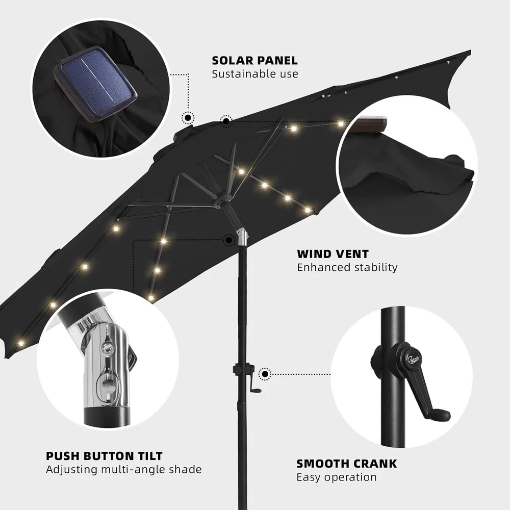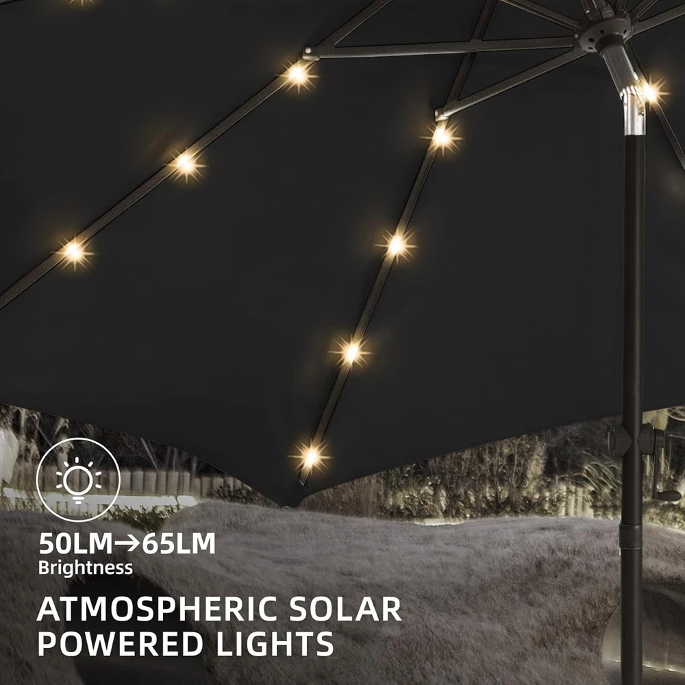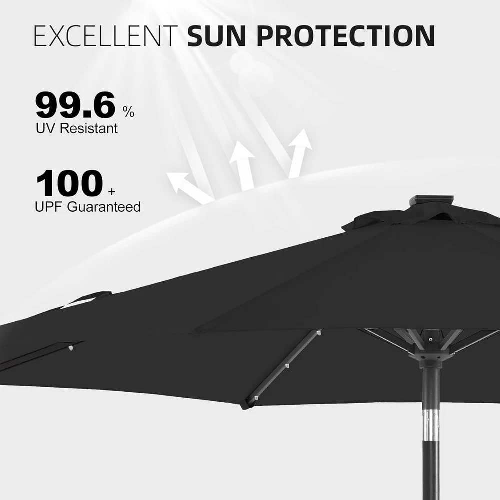 Lightweight 9ft Outdoor Umbrella with Sturdy Aluminum Frame & Solar Lights