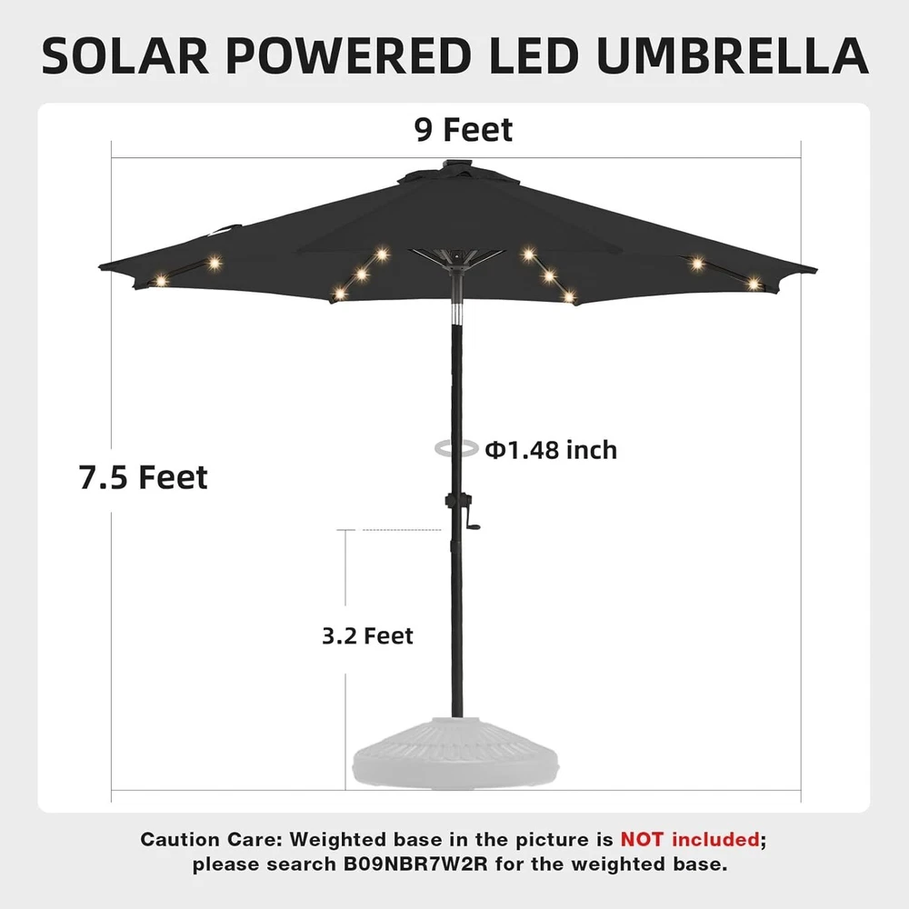 Size: 9 Ft UPC: Does not apply Handle Material: Rubber Color: Carbon Grey Item Height: 9 ft Pole Diameter: 1.5 in Frame Material: Aluminum Canopy Width: Solar Patio Umbrella Style: Contemporary Recommended Uses For Product: Patio Pole Color: Gray Opening Mechanism: Crank Lift System Specific Uses For Product: Sun Features: Lightweight, Solar Lighted, UV Protection, Water Resistant, Fade Resistant, Durable, Lighted, Crank Lift System, Push-Button, Tilt Canopy Shape: Round Shape: Round Special Feature: Lighted, Uv Resistant Canopy Material: Polyester Item Weight: 15.22 lb Product Dimensions: 108 X 108 X 98.4 Inches Stand Included: No Shaft Material: Aluminum Target Audience: Adult gtin13: Does not apply Type: Market Umbrella Brand: Unbranded Pole Material: Aluminum