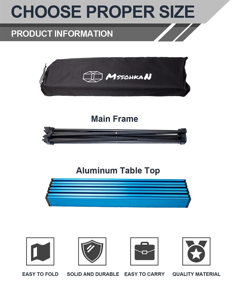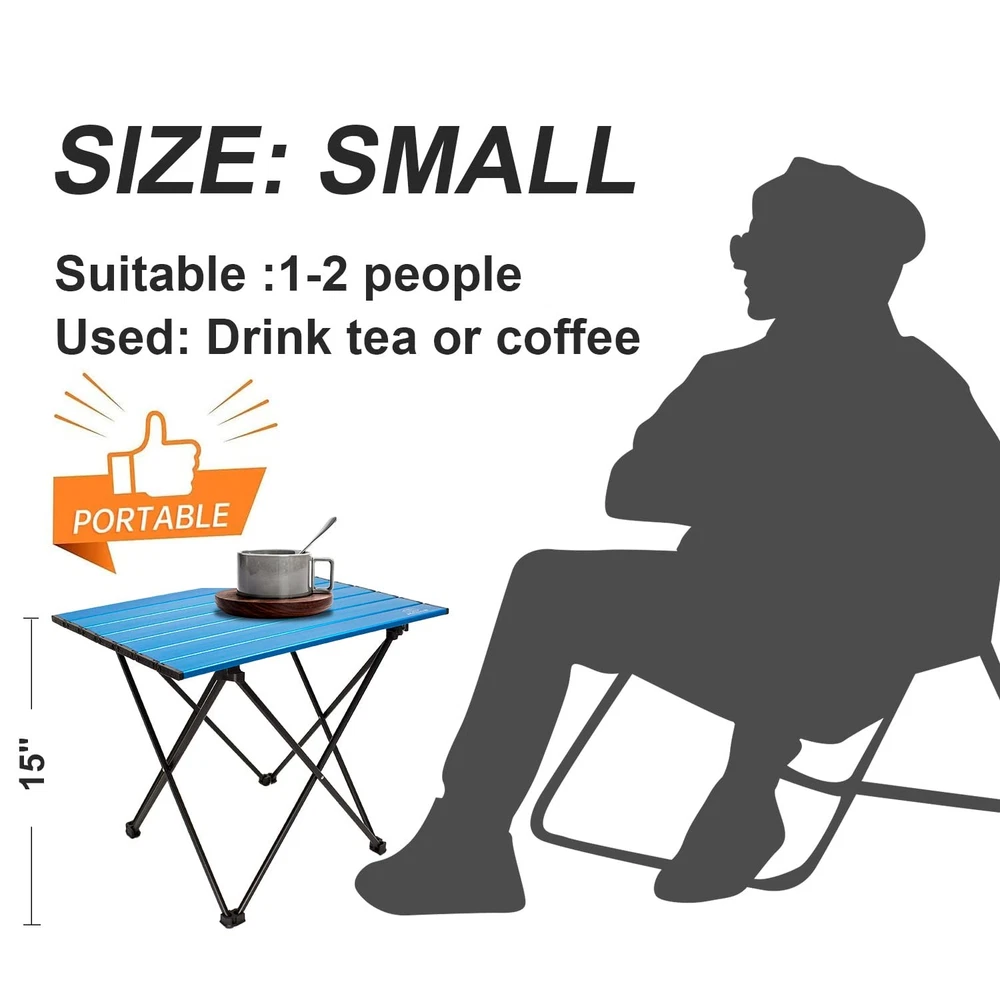 new 💪 [EASY TO ASSEMBLE - NO TOOLS NEEDED] This sturdy camping table is composed of an aluminum X-shaped frame that is snapped together, which is designed to pop up and fold with ease. Its unique hinge design enables easy and robust connection to the table top. Just pop it open and attach the table top and you are ready to use it! You can even assemble this in one minute! It is so easy that a kid can do it! 👍 [STABLE & DURABLE] provides a stable work surface for hobbyists. This camp table is made of heavy duty aluminium alloy, has a flat top and cross legs, and all four legs are equipped with skidproof foot cover, it stays stable in any flat terrain.The table legs use the high intension aluminium alloy,the bearing capacity is strong,it is not easy to bend and deformation. The aluminum frame and table top connection is compact, solid design can sustain maximum 55 pounds. 😃 [PREMIUM MATERIAL & RUSTLESS] The table board is made of durable aluminum material, unlike wooden or nylon-top portable tables, the aluminum desktop covered with high-quality spray which are waterproof, anti-corrosion, ovenproof, scratch-resistant, and long-lasting use time and easy to clean by paper and cloth. You can also use table in the rain day because the table is without rusting. 💨 [LIGHTWEIGHT & FLODING] Light as a wing. The small-sized table weighs £2.20, the volume of the table is 16.1in×13.6in×11.5in. The middle-sized table weighs £3.20, the volume of the table is 22in×16in×16in. This camp side table is collapsible, both the table top and legs are using foldable design, it is easy to assemble and separate. The table fits easily into backpacks, cars, RV's, canoe, river rafts, motorcycle rear seats or wherever you may need it, and doesn't occupy any place. 💯 [MULTIPURPOSE & QUALITY ASSURANCE] The flodable camping table can not only be used indoor, but also be used for camping, fishig, hiking, beach, picnic, BBQ, cooking and dining. In addition, you can also use this multifunctional folding table to put your laptop, play board game or even serve as a bedside table. Such a small table provides great convenience for your life. If you are not satisfied with the folding table for any reason, please feel free contact us.