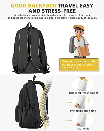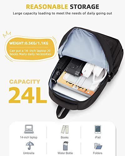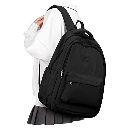Lightweight Black Laptop Backpack for School Travel Work Men Women