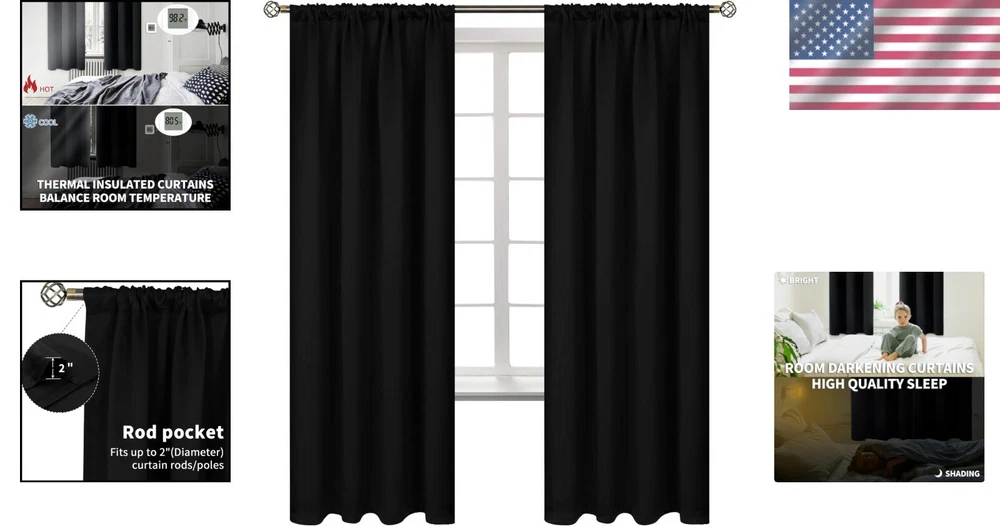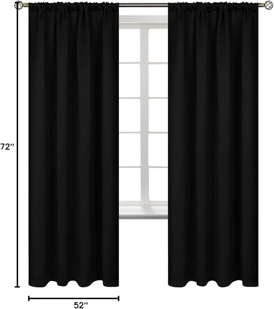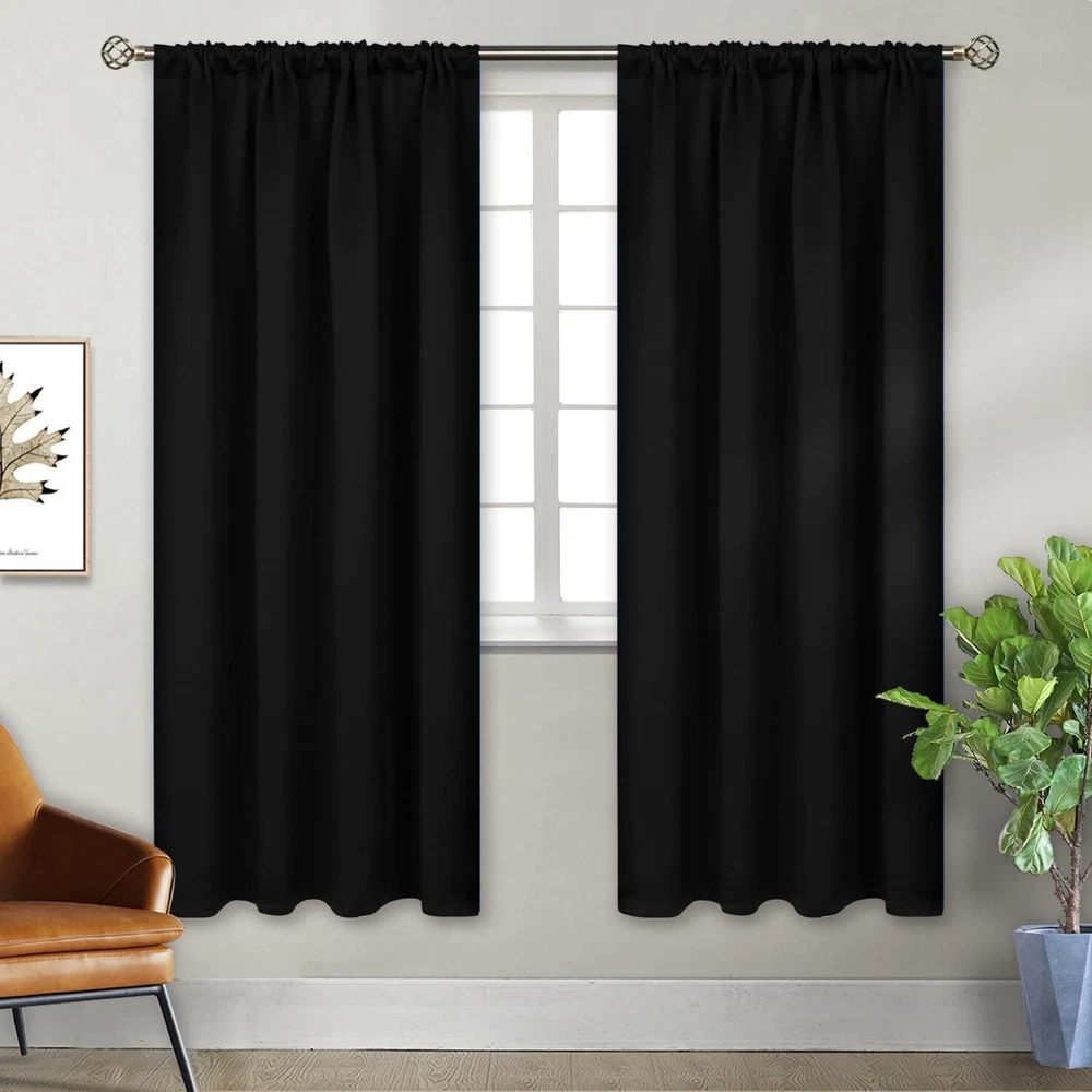 Product Care Instructions: Machine Wash Brand: Unbranded Color: Black Smart Home Protocol: None Style: Modern Hanging Method: Rod Pocket Occasion: Daily Recommended Uses For Product: Indoor UPC: Does not apply Product Dimensions: 72"l X 52"w Care Instructions: Machine Wash, Do Not Bleach, Tumble Dry Low Pattern: Solid Size: 52"w x 72"l (pack of 2) Package Weight: 1.13 Kilograms Department: Adults, Teens, Kids, Unisex Baby & Toddler Type: Curtains & Pelmet Set Item Length: 72 in gtin13: Does not apply Room: Living Room Features: Blackout, Light Blocking, Thermal Insulated, Room Darkening, UV Protection, Privacy Protection, Energy Saving, Noise Reduction Smart Home Compatibility: None Curtain Form: Drapes Personalize: No Mounting: Rod Pocket Closure Type: Rod Pocket Top Style: Rod Pocket Theme: Space Number Of Items: 2 Transparency: Blackout Item Weight: Light Opacity: Blackout Adjustability: None Included Components: Curtains Lining Description: Unlined Curtain Heading: Rod Pocket Compatible Window Type: Standard Rod Weave Type: Plain Material: Polyester Seasons: All Season