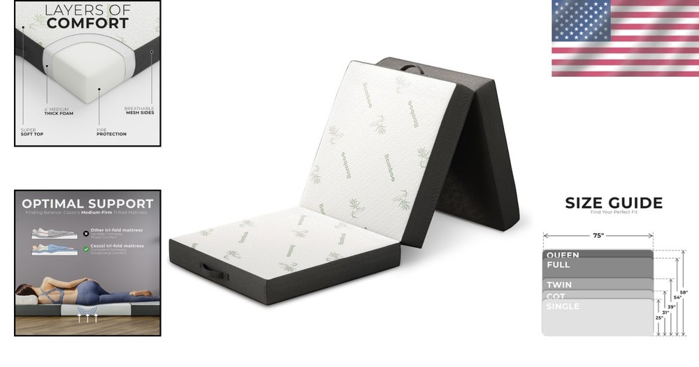 Lightweight Compact Trifold Mattress with Removable Cover - 4 inch Thick Comfort ‹ › ‹ › ‹ › ‹ › ‹ › ‹ › ‹ › ‹ › ‹ › ‹ › Lightweight Compact Trifold Mattress - Removable Cover - 4 inch Thick Comfort Features: Convenient & comfortable alternative to air mattresses. Folds and unfolds with little effort, making it easy to use for guests, travel, camping, and more. Made from high density foam known for its therapeutic benefits. Super firm and extremely comfortable for a restful night's sleep. Lightweight and easy to carry, perfect for camping and travel trailers. Versatile uses for guest sleeping, temporary beds, gym exercises, yoga or pilates sessions. Machine washable cover for easy cleaning and maintenance. Benefits: Enjoy the comfort of a great night's sleep wherever you go. Compact design makes it easy to store and transport. Perfect for a variety of activities like camping, exercise, and guest accommodations. Keeps you warm during outdoor adventures with its 4 inch thick foam. Transforms into a comfortable children's play area or floor lounger. Effortlessly maintain cleanliness with a machine washable cover. Why choose our Lightweight Compact Trifold Mattress? When it comes to comfort on-the-go, our Lightweight Compact Trifold Mattress is your perfect solution. Say goodbye to uncomfortable nights on thin air mattresses and embrace the plush support of high-density foam. This mattress not only provides excellent firmness but also folds conveniently for easy transportation. Whether you're camping, accommodating guests, or even engaging in a yoga session, this versatile mattress meets all your needs effortlessly. Take the first step towards unparalleled comfort today. Order now and enjoy a restful sleep wherever life takes you! Shipping Free & Fast Shipping - We offer free shipping to most of the USA with a normal delivery time of 3-7 days. However, due to the current situation, additional delivery time (up to 3 weeks) may be required for some items. Alternative Carriers - We may use alternative carriers (e.g. USPS, FedEx, UPS, etc.) to ensure your package arrives safely and on time. Due to the use of multiple carriers, we are unable to provide a tracking number automatically. Handling Time - Orders are processed and shipped within 1-2 business days of receiving cleared payment. Shipping Restrictions - Shipping to Alaska, Hawaii, Puerto Rico, Guam, and other US territories may incur shipping charges or delivery restrictions. Please contact us before ordering, or your order can be refunded/cancelled. State Restrictions - There may be restrictions based on your state of purchase. For example, certain items may not be shipped to California due to state regulations. Contact for Tracking Updates - If you require tracking updates or have any concerns about the delivery of your order, please feel free to contact us, and we will be happy to assist you. Return 30-Day Hassle-Free Returns - We want you to be completely satisfied with your purchase. If you are not, you can return the item within 30 days of receiving it for a full refund or exchange. Easy Return Process - To start a return, simply contact us and we will provide you with a prepaid return shipping label and detailed instructions. Restocking Fee - There are no restocking fees for returns. However, the buyer is responsible for return shipping costs if the return is not due to a seller's error. Refund Processing Time - Refunds will be processed within 5 business days of receiving the returned item in its condition. Payment We accept all major credit cards, PayPal, and Apple Pay for your convenience. Your payment information is secure and encrypted to ensure a safe and seamless transaction. Please complete your payment within 3 days of purchase to avoid any delays in shipping. Feedback Your feedback is extremely important to us. We strive to provide the best products and customer service possible. If you are satisfied with your purchase, please take a moment to leave us a positive review. If you have any concerns or issues with your order, please contact us before leaving negative feedback. We are committed to resolving any problems and ensuring your satisfaction. Contact Us If you have any questions or concerns, please feel free to out to our customer support team. You can contact us through the eBay messaging system. We are available Monday to Friday, 9:00 am to 5:00 pm EST, and we will do our best to respond to your inquiry within 24 hours. Buy it now and enjoy a pleasant shopping experience! Unit Quantity: 1 count Features: Foldable,Portable,Lightweight,Compact,Easy to Store,Machine Washable,Versatile Uses Cover Material: Polyester Labels & Certifications: Foldable Mattress Firmness: Firm Size: Single Type: Foam Color: Gray Thickness: 4 in Mattress Breathability: Medium Style: Contemporary/Modern Room: Bedroom Shape: Rectangle Number of Springs: 600 Care Instructions: Machine Wash Warm Item Weight: 10.21 lb .