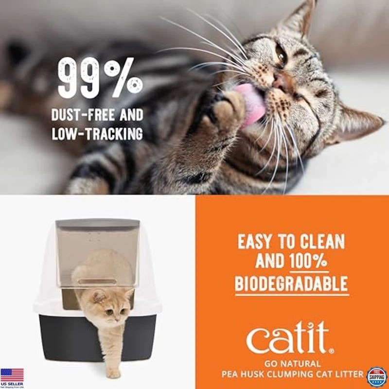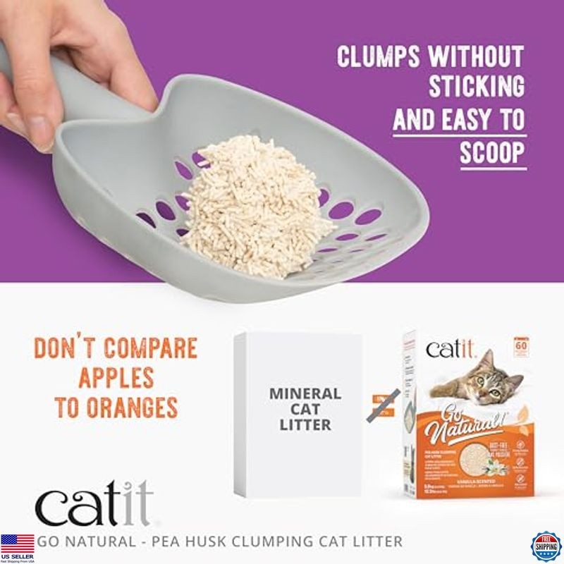 Catit - Go Natural Pea Husk Clumping Cat Litter - Lightweight, Dust Free, Easy Cleaning & Scooping, Flushable Kitty Litter with Odor Control & Subtle Fragrance - 12.3 Lbs, Vanilla Scented Description Discover the eco-friendly Catit Go Natural Pea Husk Clumping Cat Litter, a 14.8 lb pack designed for a cleaner, fresher home. This innovative litter absorbs moisture and locks in odors, making it perfect for multiple cats while minimizing tracking. Give your feline friend a comfortable and private bathroom experience with this natural alternative to traditional clay litter. Product reference: B08GVXR7V9. Features Tight Clumping - Catit Go Natural Pea Husk Litter is a strong clumping cat litter for easy and dust-free litter box management. Catit’s litter composition decomposes naturally and can be safely flushed down the toilet, reducing waste and minimizing impact Gentle On Paws - Made from 100% natural pea husks, this litter is gentle on your cat's paws and effective at controlling odors. Designed to minimize tracking around your home while offering a soft and gentle texture that's comfortable for your cat's sensitive paws, promoting a happy and stress-free litter box experience Convenient Packaging - This pack includes 12.3 lbs of natural cat litter, providing plenty of coverage for multiple cats or a single cat over an extended period of time. The packaging may vary but the quality remains consistent Dust Free – Cat litter dust may trigger allergic reactions in both cats and humans. Catit’s Pea Husk Cat Litter is 99% dust free. With exceptionally low dust, this litter is ideal for those with sensitive noses and eyes. As your kitty burrows, even the smallest pieces settle at the bottom, which helps to curb airborne dust No Harmful Chemicals or Additives - Rest assured that you are using a safe and natural product for your beloved feline companion. Catit Go Natural Pea Husk Clumping Cat Litter contains no artificial fragrances, dyes, or harsh chemicals that could harm your pet's health Shipping Free & Fast Shipping: We offer free shipping to most of the USA with a normal delivery time of 3-7 days. However, due to the current situation, additional delivery time (up to 3 weeks) may be required for some items. Alternative Carriers: We may use alternative carriers (e.g., USPS, FedEx, UPS) to ensure your package arrives safely and on time. Due to the use of multiple carriers, we are unable to provide a tracking number automatically. Handling Time: Orders are processed and shipped within 1-2 business days of receiving cleared payment. Shipping Restrictions: Shipping to Alaska, Hawaii, Puerto Rico, Guam, and other US territories may incur shipping charges or delivery restrictions. Please contact us before ordering, or your order can be refunded/cancelled. State Restrictions: Certain items may not be shipped to California due to state regulations. Contact for Tracking Updates: If you require tracking updates or have any concerns about the delivery of your order, please feel free to contact us, and we will be happy to assist you. Return Policy 30-Day Hassle-Free Returns: If you are not completely satisfied with your purchase, you can return the item for free within 30 days of receiving it for a full refund or exchange. Easy Return Process: Contact us, and we will provide you with a prepaid return shipping label and detailed instructions. No Restocking Fee: There are no restocking fees for returns. However, the buyer is responsible for return shipping costs if the return is not due to a seller's error. Refund Processing: Refunds will be processed within 1 business day of ...