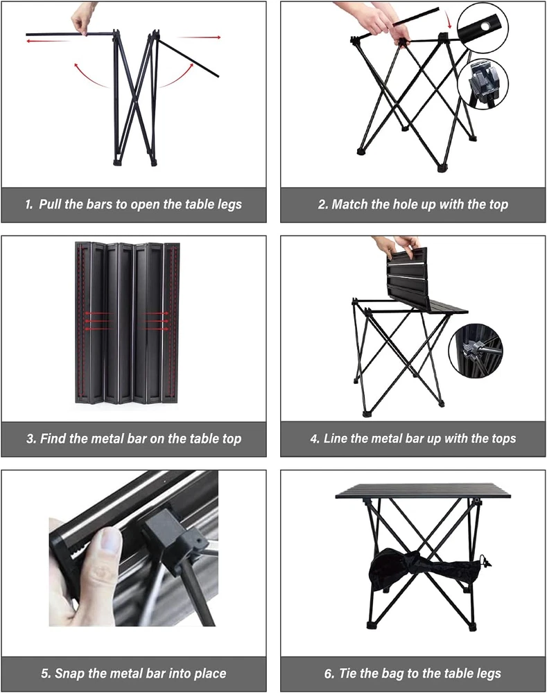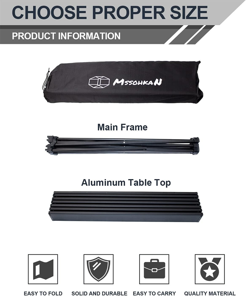 Camping Table Folding Portable Camp Side Table Aluminum Lightweight Carry Bag Beach Outdoor Hiking Picnics BBQ Cooking Dining Kitchen 🎁 [STABLE & DURABLE] MSSOHKAN provides a stable work surface for hobbyists. This camp table is made of heavy duty aluminium alloy, has a flat top and cross legs, and all four legs are equipped with skidproof foot cover, it stays stable in any flat terrain.The table legs use the high intension aluminium alloy,the bearing capacity is strong,it is not easy to bend and deformation. The aluminum frame and table top connection is compact, solid design can sustain maximum 55 pounds. 🔮 [PREMIUM MATERIAL & RUSTLESS] The table board is made of durable aluminum material, unlike wooden or nylon-top portable tables, the aluminum desktop covered with high-quality spray which are waterproof, anti-corrosion, ovenproof, scratch-resistant, and long-lasting use time and easy to clean by paper and cloth. You can also use table in the rain day because the table is without rusting. 💨 [LIGHTWEIGHT & FLODING] Light as a wing. The small-sized table weighs £2.20, the volume of the table is 16.1in×13.6in×11.5in. The middle-sized table weighs £3.20, the volume of the table is 22in×16in×16in. This camp side table is collapsible, both the table top and legs are using foldable design, it is easy to assemble and separate. The table fits easily into backpacks, cars, RV's, canoe, river rafts, motorcycle rear seats or wherever you may need it, and doesn't occupy any place. 🏖️ [EASY TO ASSEMBLE - NO TOOLS NEEDED] This sturdy camping table is composed of an aluminum X-shaped frame that is snapped together, which is designed to pop up and fold with ease. Its unique hinge design enables easy and robust connection to the table top. Just pop it open and attach the table top and you are ready to use it! You can even assemble this in one minute! It is so easy that a kid can do it! 📱 [MULTIPURPOSE & QUALITY ASSURANCE] The flodable camping table can not only be used indoor, but also be used for camping, fishig, hiking, beach, picnic, BBQ, cooking and dining. In addition, you can also use this multifunctional folding table to put your laptop, play board game or even serve as a bedside table. Such a small table provides great convenience for your life. If you are not satisfied with the folding table for any reason, please feel free contact us. Product Description MSSOHKAN foldable camping table The foldable camping table can not only be used indoor, but also be used for camping, fishing, hiking, beach, picnic, BBQ, cooking and dining. In addition, you can also use this multifunctional folding table to put your laptop, play board game or even serve as a bedside table. Such a small table provides great convenience for your life. 1. Roll up table top Different from the traditional design,the new no spring cord design is more convenient and stable. 2.Stable Grip The legs of this camping table are designed with an X-frame, which is in full compliance with the principle of triangular stability. The most important thing is the cross-legs with stable caps at the bottom, which have good stability on different terrains. 3.Unique Hinge Design Quick and easy to set up robust connection to the table top. Not easy to slip out. No extra tool needed! 4.Anti-slip Rubber Feet It can stand in all kinds of terrains stably. Such as the forest, the grass, the beach or the river. This table is perfect for all indoor & outdoor activities 1. Roll up table top 2.Stable Grip 3.Unique Hinge Design 4.Anti-slip Rubber Feet 1.All-Aluminum Material The aluminum desktop covered with high-quality spray which are waterproof, anti-corrosion, ovenproof, scratch-resistant, and long-lasting use time and easy to clean by paper and cloth. You can also use table in the rain day because the table is without rusting. 2.Foldable Design This camp side table is collapsible, both the table top and legs are using foldable design, it is easy to assemble and separate. The table is convenient to carry wherever, but also very durable. The bag puts all the parts together and is easy to store up this table. 3.Load Capacity Although this table is very light and portable, it is strong enough to provide load capacity up to 110 pounds. It is possible to place food and bowls on it during camping dinners without falling over. EASY TO ASSEMBLE - NO TOOLS NEEDED Choose proper sizes - choose the best for you The table are specially designed with Low height, so you can use it with/without a chair … the table is roughly the height of an adult’s knee height which is extremely approachable! Unextended Seating Capacity 2 Is Customizable? No Number of Items 1 Table design Dining Table Material Type Aluminum Is Electric No Is Stain Resistant No Model Number 791319280428 Frame Material Type Metal Unit Count 1.0 Count Includes All Assembly Tools No Product Dimensions 5.9"D x 17.2"W x 2.6"H Seating Capacity 2 Tilting No Shape Square Maximum Weight Recommendation 55 Pounds Base Aluminum Extended Length 16 Inches Number Of Shelves 1 Item Weight 22 Pounds Frame Material Metal Included Components Assembly Guide Is the item resizable? No Top Material Type Aluminum Shape Square Item Weight 2.2 Pounds Recommended Number of People for Assembly 1 Size 16"D x 11"W x 15"H Top Color Blue Base To Top Distance 16 Inches Is Foldable Yes Item Height 2.6 inches Color Black Item Dimensions D x W x H 5.9"D x 17.2"W x 2.6"H Furniture Finish Aluminum Indoor Outdoor Usage Outdoor, Indoor Handle Material Aluminum Handle Color Black Base Type Leg Furniture Base Movement Glide Table Design Dining Table Style Name American Top Material Type Aluminum 17.2 "h x 5.9 "h x 2.6 "h. Weight: 2.2 lb Shipping from the USA All of our products are shipped from the USA, ensuring quick delivery to your destination. Payment We offer the following payment methods: PayPal, credit card, bank transfer, and eBay's secure payment system. Free Shipping & Free Returns Shipping within the USA is F