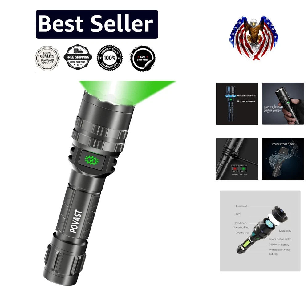 Lightweight Rechargeable Torch with Zoom and 5 Adjustable Modes - 1200 Lumens ‹ › ‹ › ‹ › ‹ › ‹ › ‹ › ‹ › ‹ › Lightweight Rechargeable Torch Experience unparalleled brightness and versatility with our Lightweight Rechargeable Torch, designed for those who demand functionality without sacrificing elegance. Features: 1200 Lumens Bright Green Light: Illuminate your surroundings with an incredibly powerful 1200 lumens bright green light that is sure to brighten even the darkest spaces. Convenient Rotate Zoomable Light: Easily adjust the beam focus with a convenient rotating zoom feature, allowing for a tailored lighting experience that suits your every need. Five Adjustable Modes: Select from five distinct modes – High, Middle, Low, Strobe, and SOS – to adapt the lighting to any situation, whether it be for daily tasks or emergency situations. USB Charging Function: The environmentally-friendly torch features an efficient USB charging function, making it simple to recharge for unlimited adventures. Just remember, the positive end of the battery goes into the flashlight first. Benefits: Brilliant illumination for outdoor activities, emergencies, and everyday use. Compact and lightweight design makes it easy to carry wherever you go. Flexible zoom and multiple modes ensure you have the perfect light for every occasion. Rechargeable convenience reduces waste and ensures your torch is always ready for action. Why choose our Lightweight Rechargeable Torch? In a world where reliability and performance are paramount, our Lightweight Rechargeable Torch stands out as a beacon of quality. Its striking 1200 lumens bright green light combined with adjustable modes make it perfect for any scenario, whether navigating through the wilderness or adding a touch of brightness to your home. Easy to carry, effortless to use, and built to endure, this torch is an essential addition to your outdoor gear or emergency kit. Illuminate your world with elegance and power—order yours today! Shipping Free & Fast Shipping - We offer free shipping to most of the USA with a normal delivery time of 3-7 days. However, due to the current situation, additional delivery time (up to 3 weeks) may be required for some items. Alternative Carriers - We may use alternative carriers (e.g. USPS, FedEx, UPS, etc.) to ensure your package arrives safely and on time. Due to the use of multiple carriers, we are unable to provide a tracking number automatically. Handling Time - Orders are processed and shipped within 1-2 business days of receiving cleared payment. Shipping Restrictions - Shipping to Alaska, Hawaii, Puerto Rico, Guam, and other US territories may incur shipping charges or delivery restrictions. Please contact us before ordering, or your order can be refunded/cancelled. State Restrictions - There may be restrictions based on your state of purchase. For example, certain items may not be shipped to California due to state regulations. Contact for Tracking Updates - If you require tracking updates or have any concerns about the delivery of your order, please feel free to contact us, and we will be happy to assist you. Return 30-Day Hassle-Free Returns - We want you to be completely satisfied with your purchase. If you are not, you can return the item within 30 days of receiving it for a full refund or exchange. Easy Return Process - To start a return, simply contact us and we will provide you with a prepaid return shipping label and detailed instructions. Restocking Fee - There are no restocking fees for returns. However, the buyer is responsible for return shipping costs if the return is not due to a seller's error. Refund Processing Time - Refunds will be processed within 5 business days of receiving the returned item in its original condition. Payment We accept all major credit cards, PayPal, and Apple Pay for your convenience. Your payment information is secure and encrypted to ensure a safe and seamless transaction. Please complete your payment within 3 days of purchase to avoid any delays in shipping. Feedback Your feedback is extremely important to us. We strive to provide the best products and customer service possible. If you are satisfied with your purchase, please take a moment to leave us a positive review. If you have any concerns or issues with your order, please contact us before leaving negative feedback. We are committed to resolving any problems and ensuring your satisfaction. Contact Us If you have any questions or concerns, please feel free to reach out to our customer support team. You can contact us through the eBay messaging system. We are available Monday to Friday, 9:00 am to 5:00 pm EST, and we will do our best to respond to your inquiry within 24 hours. Thank you for supporting our small family business! UPC: Not Set Voltage: 5 volts (dc) Item Height: Rechargeable LED Flashlight Item Length: Rechargeable LED Flashlight Item Weight: 8 ounces Item Width: Not Set Model: Not Set Lumens: 1200 lumens Number of LEDs: 1 Unit Quantity: 1 Features: Rechargeable,Zoomable,5 Modes,Adjustable Focus,USB Charging,High Power Material: Aluminum Brand: Unbranded Type: Flashlight Lighting Technology: LED Power Source: Battery Operating Range: Not specified MPN: Not Set Battery Technology: Li-Ion Number of Batteries: 1 Lithium Ion Batteries Required. (included) Color: Green Country/Region of Manufacture: Not Set IP Rating: Not specified Operating Time: Not specified Number of Lights: 1 Unit Type: oz Personalize: Not Set