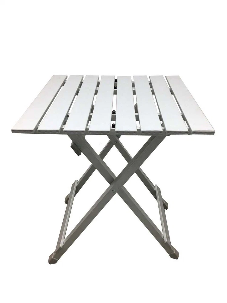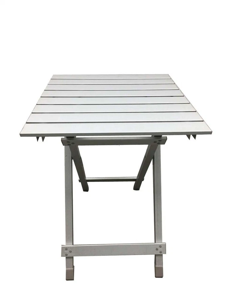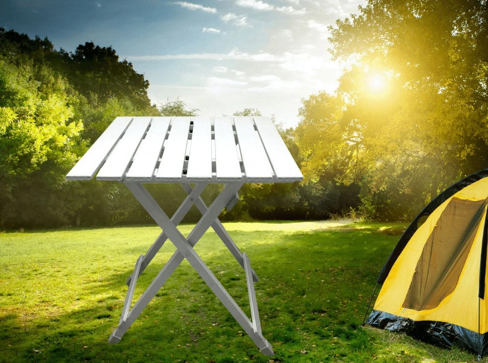 Aluminum Top Folding Table on your outdoor journeys for a convenient dining experience. Whether it's snacks or a full meal, this table is perfect for camping, tailgating, picnics, and more. With a compact and lightweight design, it's easy to carry anywhere and convenient to store in its half-folded size. Ideal for making memories during backyard campouts, riverside Saturdays with friends, or a solitary week in the wilderness. Great for camping, picnics, tailgating, backyard, and more Lightweight and rust-resistant The camping folding table is made of aluminum Folds in half size for easy storage Weight of table: 4.9 lbs Dimensions: 19.29" L x 18.7" W x 24.6" H Weight capacity: 110 lbs