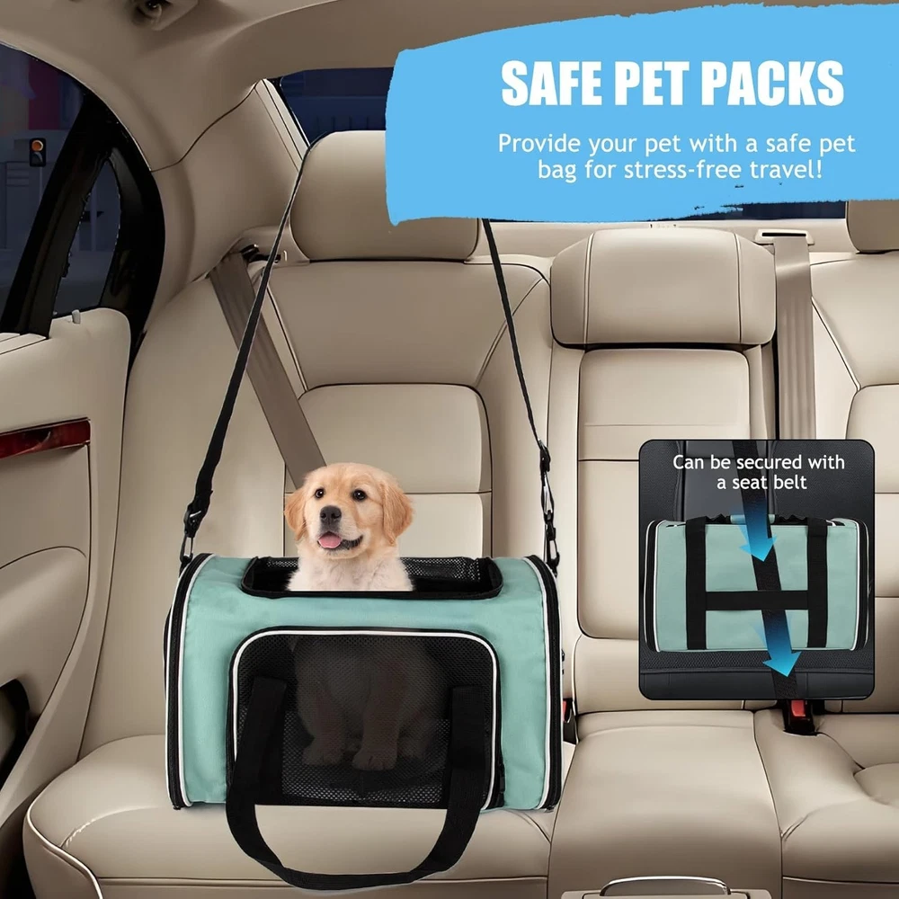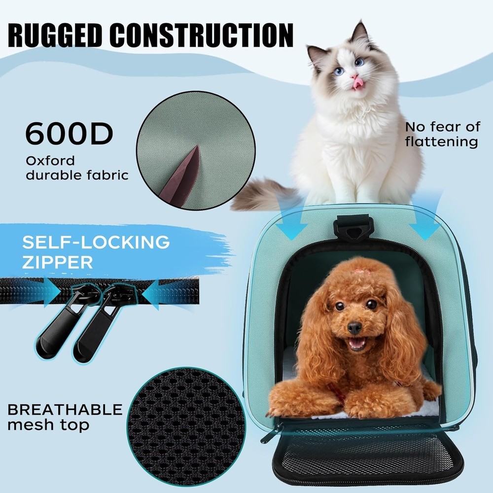 This carrier is a game-changer for pet travel! The lightweight design makes it super easy to carry, while the sturdy frame keeps its shape. My pup stays cool thanks to the three-sided mesh ventilation, and the zippered openings make it simple to get them in and out. The materials feel durable yet soft, and the adjustable strap is a nice touch. Perfect for trips, vet visits, or just running errands—highly recommend for small dogs!