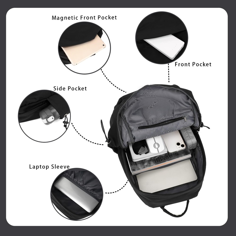 【MATERIAL&SIZE】: Made of high quality water resistant polyester fabric, which ensure a long lasting usage everyday. Reinforced sewing thread and edges can stand up to years of frequency use. External dimensions: 17.3"x12"x 6.9", Weight: 1.15 LBS, Capacity: 25L. 【COMFORT&FASHION】: Available in multiple colors, This backpack suitable not only for those still in college, but also for office workers, suitable for commuting, mobile work, outdoor activities and travel. Comfortable soft padded back design with thick but soft multi-panel ventilated padding, gives you maximum back support. Breathable and adjustable shoulder straps relieve the stress of shoulder. Foam padded top handle for a long time carry on. 【LOTS OF STORAGE SPACE&POCKETS】: The backpack features a large capacity design with compartments, one spacious packing compartment roomy for daily necessities, tech electronics accessories, providing ample storage space. There are two front pockets for clothes, ipad, magazine and other necessaries belongings. You can place items in an orderly manner. This backpack can accommodate up to 15.6-inch laptops. 【COMFY&STURDY】: This backpack is made of lightweight, waterproof and high-quality fabric, with a self weight of only about 1 pound for comfortable carrying. Its simple and casual design can be well paired with trendy, personal, unique style, making it the perfect choice for going out. 【IDEAL GIFT CHOICE】: This stylish backpack is a great gift to your friends, relatives, partners for Christmas, Thanksgiving Day, Birthday and other special festivals.