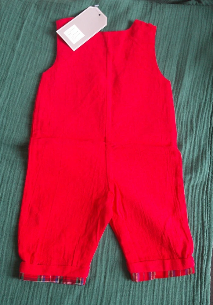 Lil Cactus Baby Boys Red Christmas Tree Truck Smocked Overalls Size: 3-6 Months NWT