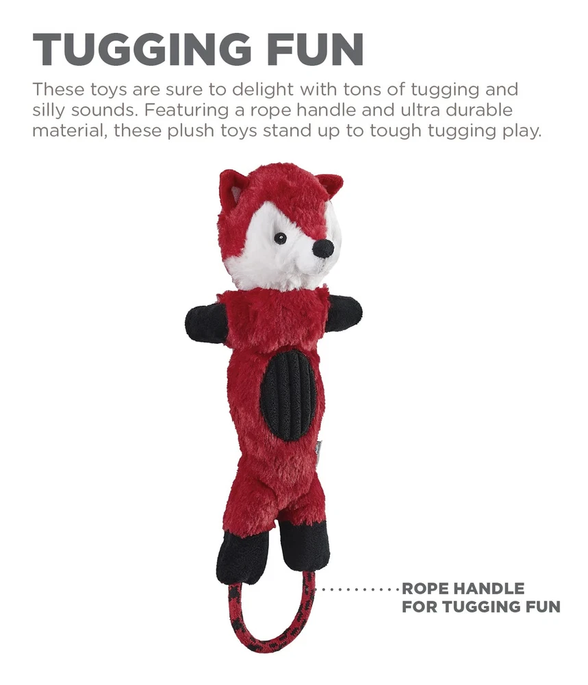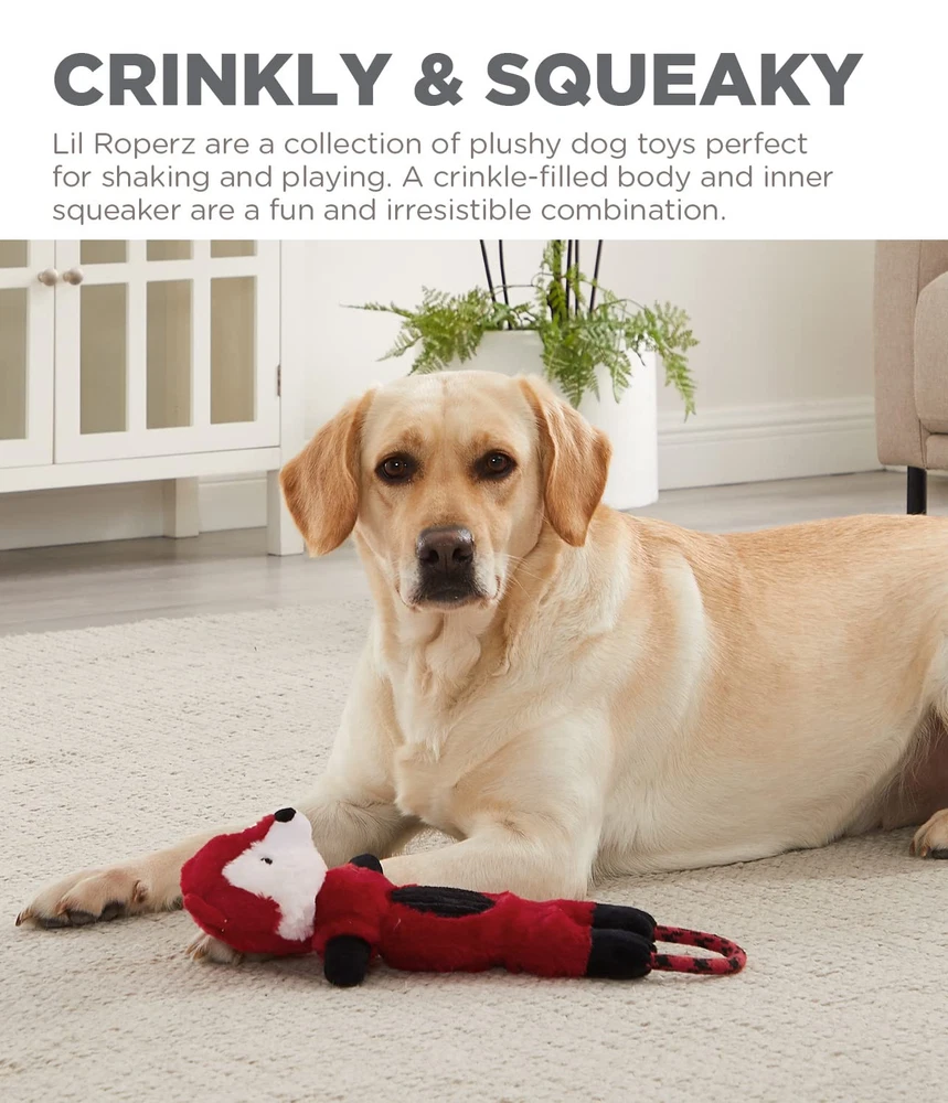 These cute critters will delight your dog with tons of tugging and silly sounds. Featuring squeak and crinkle sounds dogs love, rope handle and ultra durable material, these plush toys stand up to tough tugging play. Available in 3 cute characters - Hedgehog, Fox & Gator. SAFETY AND CARE: When choosing a toy, make sure to choose an appropriate size toy for your dog. No toy is indestructible. ALWAYS supervise your dog when using a toy of any kind. Inspect toys regularly for damage and remove and replace if broken, or if parts become separated, as serious injury may result. Intended for dogs only. Keep out of reach of children. CRINKLY & SQUEAKY DOG TOY: Lil Roperz from are a collection of plushy dog toys perfect for shaking and playing. A crinkle-filled body and inner squeaker are a fun and irresistible combination. K9 TUFF GUARD TECHNOLOGY: These adorable dog toys are made with K9 Tuff Guard Technology that features reinforced non-rip seams, ultra-durable fused backing, and double stitched seams to ensure longer-lasting fun! ULTIMATE TUGGING FUN: These cute critters will delight your dog with tons of tugging and silly sounds. Featuring squeak and crinkle sounds dogs love, rope handle and ultra-durable material, these plush toys stand up to tough tugging play. ACTION PACKED: We've packed our Lil Roperz with what dogs love most, SQUEAKERS and CRINKLE, for the ultimate crunching and tugging fun! THIS IS NOT A CHEW TOY: No toy is indestructible. Do not leave toys with unsupervised pets. Remove and replace toy if damaged.