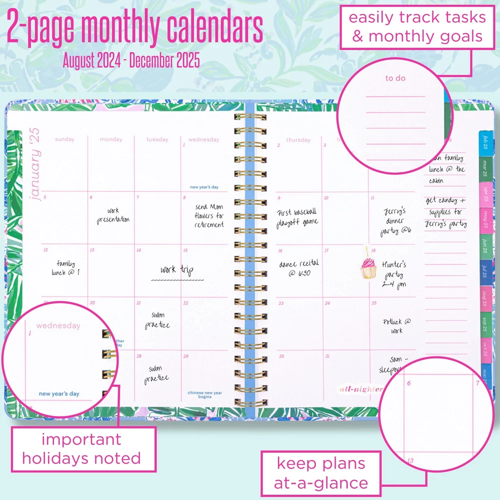 Lilly Pulitzer Daily Planner Dated August 2024 - December 2025, Weekly Agenda with Monthly Calendar, Stickers, Pockets, & Spiral Binding, Just A Pinch 2024-2025 Planner Weekly and Monthly: Agenda provides 17 months of coverage beginning in August 2024 and ending in December 2025; planner book includes 272 total pages and a printed hard cover with gold details Day Planner: Each weekly calendar has lined sections for planning out each day of the week; all weekly planner pages have the major holidays listed and tons of room for daily tasks and activities Monthly Calendars: Each month is divided by laminated tabs and includes a monthly calendar that has open boxes for each day, major holidays listed, and a lined “to do” column to set goals and write lists Planner Accessories: 24-25 planner features colorful stickers, a reinforced double-sided pocket page, durable gold metal spiral, and an elastic band closure. Plus, pages for notes, dates to celebrate, addresses, and travel journal Cute Planner: Date book is complete with hand painted art interiors and a sturdy hardcover that is printed in a vibrant Lilly Pulitzer pattern. Spiral planner measures 11.13 inches (28.3 cm) long by 8.63 inches (21.9 cm) wide (similar in size to a standard notebook) 2024-2025 Planner Weekly and Monthly: Agenda provides 17 months of coverage beginning in August 2024 and ending in December 2025; planner book includes 272 total pages and a printed hard cover with gold details Day Planner: Each weekly calendar has lined sections for planning out each day of the week; all weekly planner pages have the major holidays listed and tons of room for daily tasks and activities Monthly Calendars: Each month is divided by laminated tabs and includes a monthly calendar that has open boxes for each day, major holidays listed, and a lined “to do” column to set goals and write lists Planner Accessories: 24-25 planner features colorful stickers, a reinforced double-sided pocket page, durable gold metal spiral, and an elastic band closure. Plus, pages for notes, dates to celebrate, addresses, and travel journal Cute Planner: Date book is complete with hand painted art interiors and a sturdy hardcover that is printed in a vibrant Lilly Pulitzer pattern. Spiral planner measures 11.13 inches (28.3 cm) long by 8.63 inches (21.9 cm) wide (similar in size to a standard notebook) Shipping from the USA All of our products are shipped from the USA, ensuring quick delivery to your destination. Payment We offer the following payment methods: PayPal, credit card, bank transfer, and eBay's secure payment system. Free Shipping & Free Returns Shipping within the USA is FREE. Additionally, any return is absolutely free for you. Risk-Free Purchase You have the option to return an item within 30 days without any justification. We cover the return shipping costs! Fast Shipping We ship immediately upon receipt of payment. Generally, the package is delivered within 2-3 days in the USA. If it takes longer, we will contact you. Quality and Costs Made in Europe, USA, China No customs fees or additional charges Total satisfaction guarantee Invoice with declared VAT available upon request in .pdf format Feedback Your feedback is very important to us. After you pay for your purchase, you will automatically receive positive feedback from us.