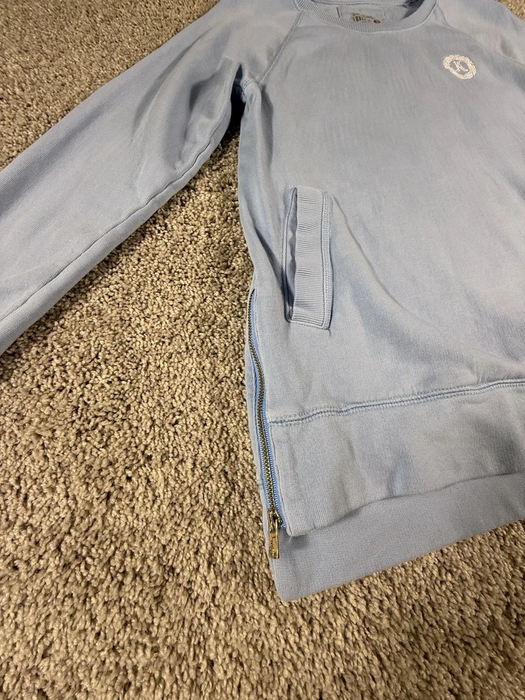 The Lilly Pulitzer LUXLETIC Beach Comber Pullover in Blue is a stylish activewear piece perfect for women who love the beach and are into athleisure. Made from cotton with a knit fabric type, this pullover features long sleeves, a crew neckline, and bottom side zips for added functionality. The solid blue color adds a touch of vibrancy, while the machine washable garment care makes it easy to maintain. Ideal for casual outings or workouts, this Lilly Pulitzer pullover combines comfort and style effortlessly, representing the brand's signature blend of chic and practical design. 4003