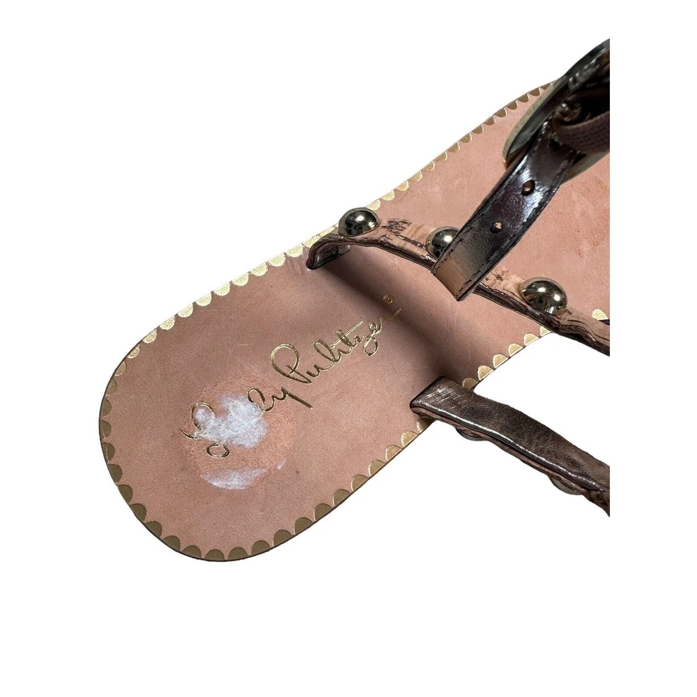 Lilly Pulitzer Rita Sandal Size 6 T-Strap Studded Flat Summer Ankle Strap