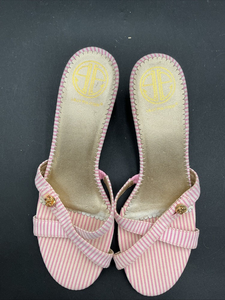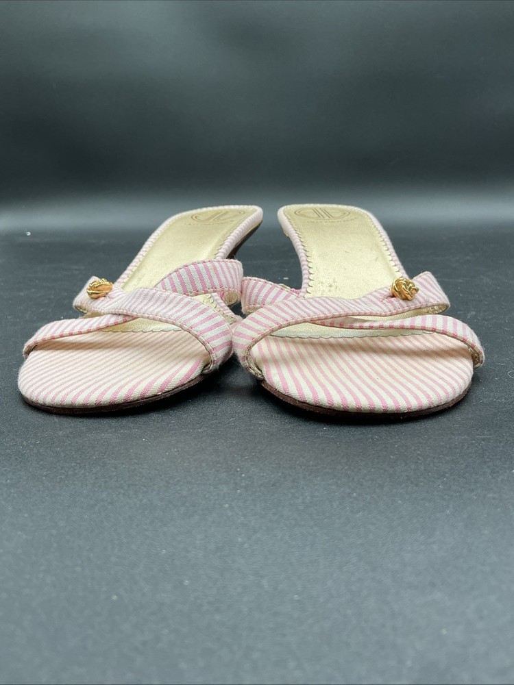 Lands' End Women's Wedge Sandals Size 8.5 Pink & Tan Suede Adjustable Strap