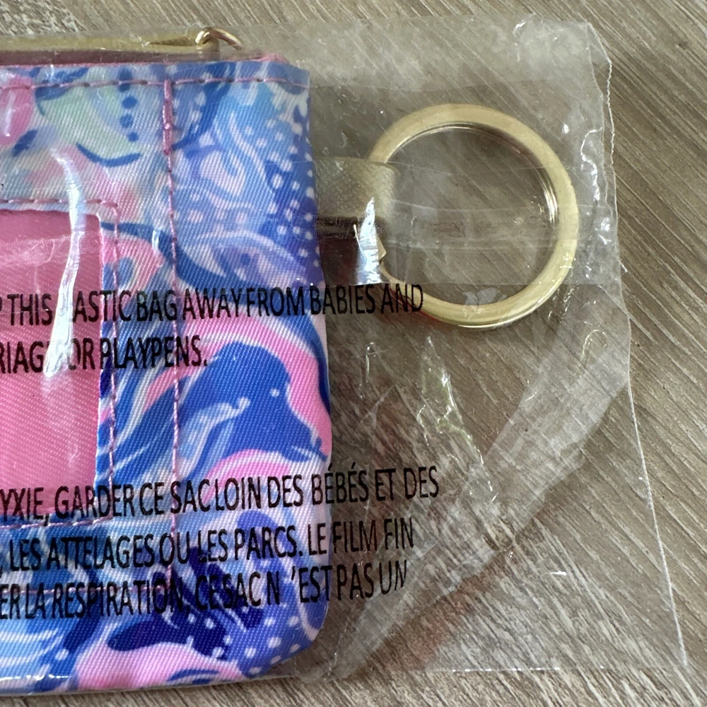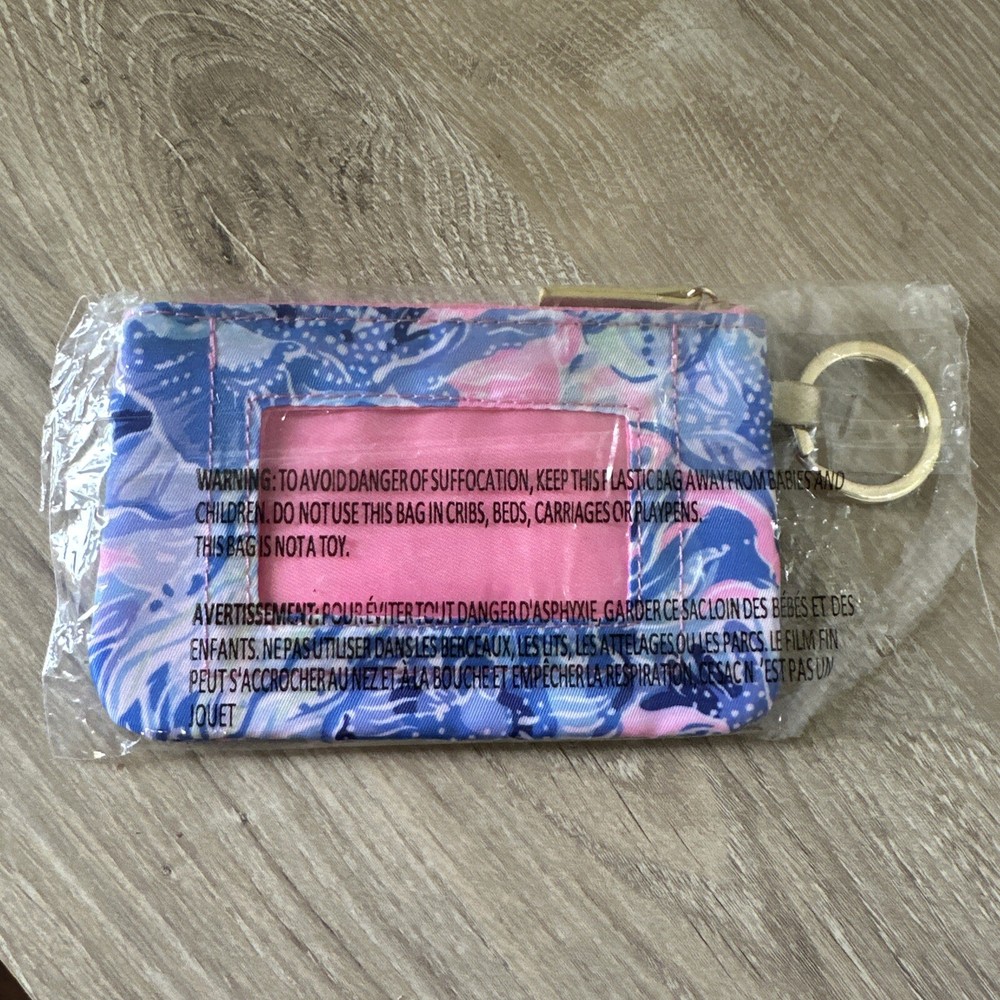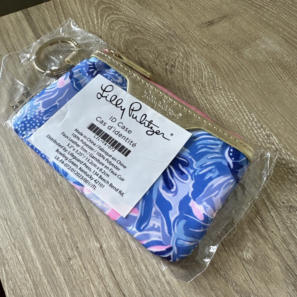 This Lilly Pulitzer wallet is a stylish and functional accessory for women. The gold-tone metal wallet features a zip-around closure and a keychain for easy access to your ID and cards. The wallet is designed with a blue character and comes with a variety of features, including credit card holders. It is perfect for those who want a chic wallet that is both practical and fashionable.