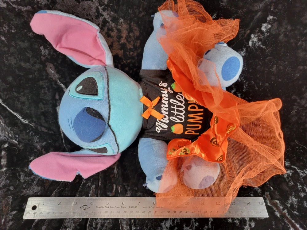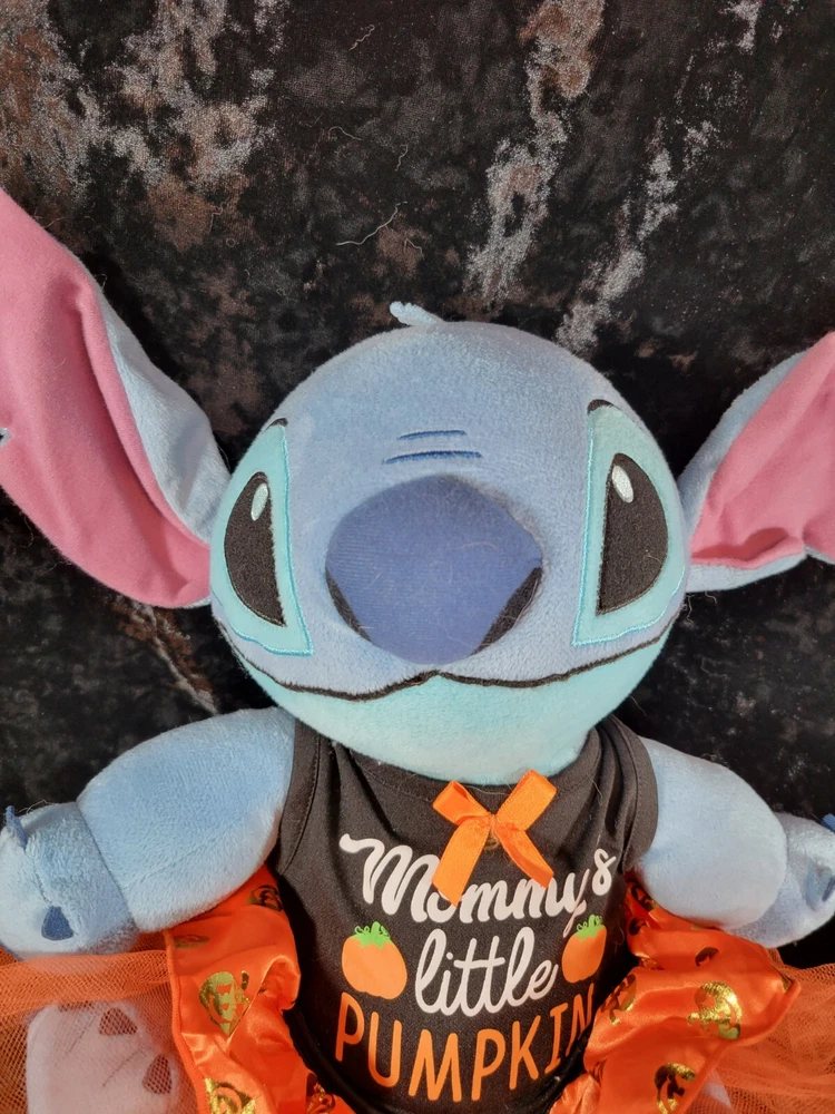 Lilo & Stitch Halloween Disney Plush Toy with " Mommy's Little Pumpkin" on her Halloween Dress. This little bundle is very soft and in very good condition. Please let me know if you want more pictures or have any questions. Each item is carefully packaged to prevent any damage and is shipped immediately with tracking.