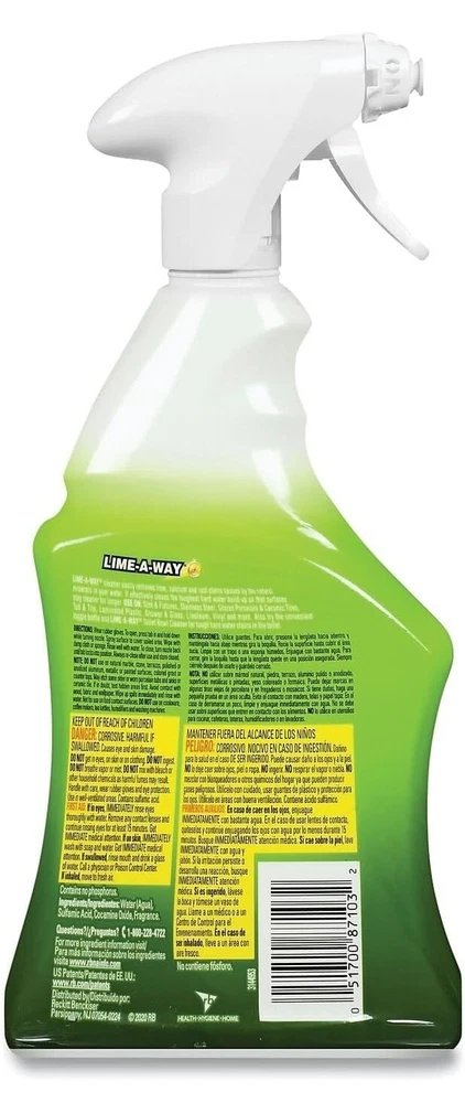 Lime A Way Lime Away Thick Gel Formula Toilet Bowl Cleaner 22 Fluid Ounce Item Form Liquid Scent Lemon Specific Uses For Product Sinks,Tile,Toilet Bowl,Shower,Glass Material Feature Natural About this item Lime-A-Way cleaner with Turbo Power destroys Lime, Calcium & Rust Removes the toughest limescale in seconds without scrubbing Removes lime, calcium and rust stains caused by the natural minerals in your water Cleans the toughest hard water build-up so that surfaces stay cleaner for longer Good for use on: Sinks & Fixtures, Tub & Tile, and Shower & Glass Product Description Lime-A-Way is the expert hard water cleaner that provides solutions to your lime, calcium and rust stains. It is scientifically proven to eliminate limescale deposits, leaving your home clean from hard water stains. Lime-A-Way has three hard water solutions to suit your needs: trigger, toggle and toilet bowl cleaner. Product details Is Discontinued By Manufacturer : No Product Dimensions : 2.38 x 4.75 x 10.81 inches; 1.38 Pounds Department : Health and Household Date First Available : December 7, 2012 Manufacturer : Reckitt Benckiser Country of Origin : USA Important information Safety Information Avoid contact with eyes, skin, and clothing; may cause burns or irritation. Ingredients Water (Agua), Sulfamic Acid, Cocamine Oxide, Fragrance. Directions Apply Lime-A-Way Cleaner directly to the affected surface, let it sit for a few minutes to dissolve limescale and calcium deposits, scrub if necessary, and rinse thoroughly with water. Legal Disclaimer Statements regarding dietary supplements have not been evaluated by the FDA and are not intended to diagnose, treat, cure, or prevent any disease or health condition. From the manufacturer
