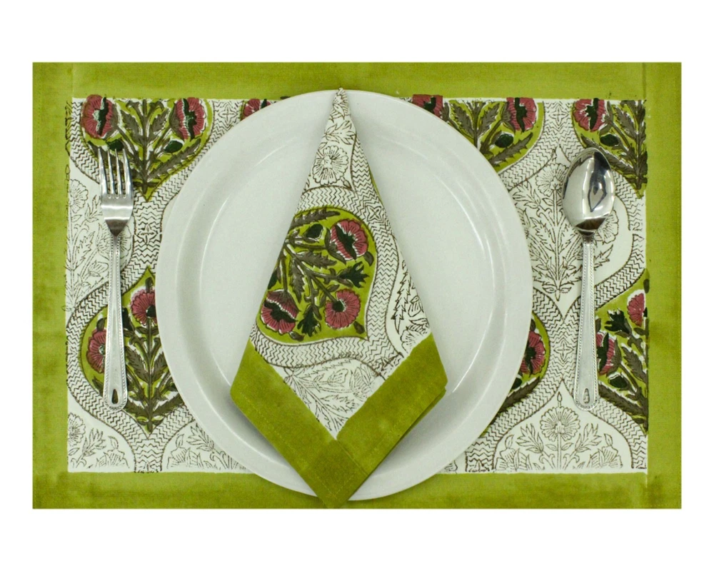 $ 20.65Colorful Indian Hand Block Printed Cotton Table Napkins in Green & Blue