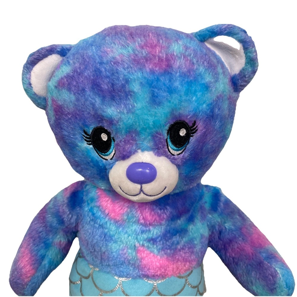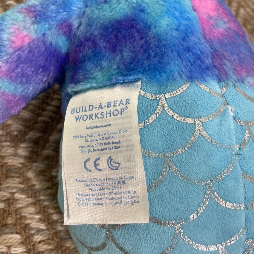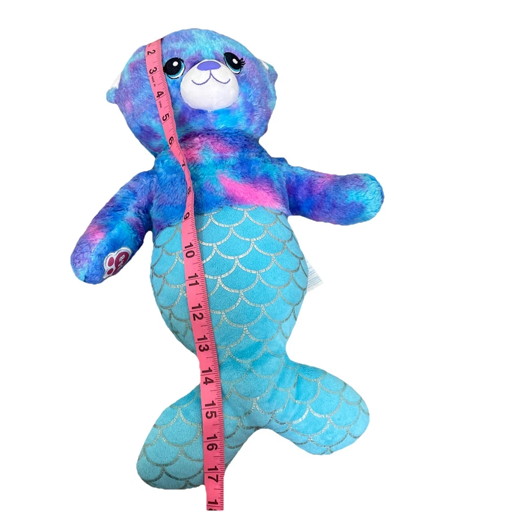 Experience the magic of Disney's The Little Mermaid with this exquisite Build-A-Bear Workshop plush toy. This 16-inch stuffed animal is designed as Ariel, the beloved mermaid princess, featuring vibrant blue fur and intricate details that capture her charm. The item is perfect for fans of all ages, from children to adults, and comes without packaging for added convenience. This limited edition collector's item is made from high-quality polyester and plush materials, ensuring durability and longevity. It is suitable for kids and features surface washable fur, making it easy to keep clean. The plush toy is a must-have for any fan of the franchise or collector of Build-A-Bear Workshop merchandise.