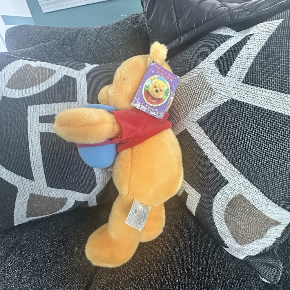 The Build-A-Bear Workshop Winnie the Pooh Plush Limited Edition is an adorable orange bear standing at 18 inches tall. This plush bear features the beloved character Winnie the Pooh and comes with a honey pot accessory, making it a delightful addition to any collection. Made from plush material, this limited edition bear is part of the Disney franchise and is sure to bring joy to both children and collectors alike.