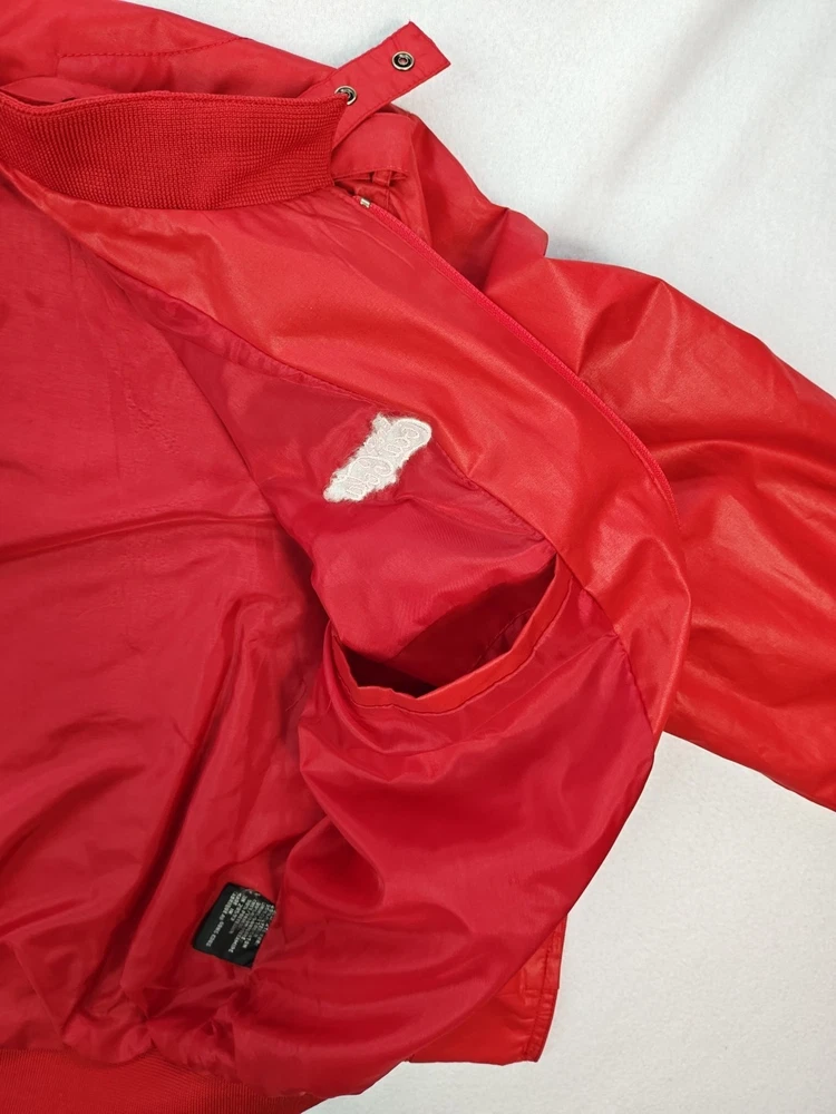 This limited edition Members Only Coca Cola satin cafe racer jacket, in size 42, is a vintage piece from the 1980s. Made from a polyester/cotton blend with a microfiber fabric type, this bomber jacket features a full zip closure, lined interior, and shoulder epaulets. Perfect for casual occasions, it is accented with the iconic Coca Cola logo and has a zip down collar style. With a retro 80s theme, this jacket is a unique addition to any man's wardrobe, offering a blend of classic style and outdoor functionality. Measurements Laid Flat : Shoulder to Hem: 25", Armpit to Armpit:24.5", Sleeve:25.5" . 100% GENUINE – U S A SELLER PLEASE NOTE: Please look at the measurements before purchasing. If you're not sure about the size, flat lay a similar item of your own and measure that item to compare with our measurements. This definitely helps in deciding if the item is the right size. Return Policy If your item does not fit, we do accept returns within 30 days . Please note, the item must be returned in the exact same condition as it was received. Buyer pays return shipping if the item does not fit. We request that you select "Item does not fit" when returning an item that does not fit. Thank you! Please see pictures for an accurate description of the item and condition. Also If you need a close up picture of something just write me a message. **Thank You for your Interest. Be sure to check out my store for more**