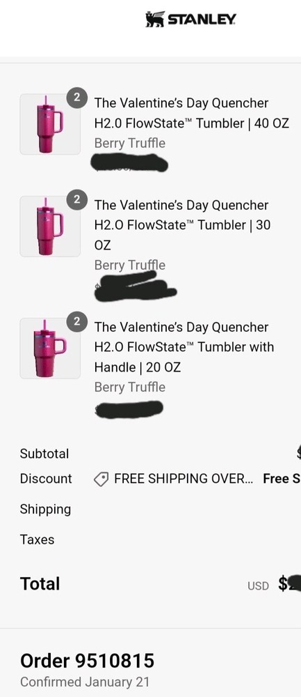 This is a limited edition Stanley Valentine's Day 20 oz tumbler in a beautiful berry truffle color, adorned with special heart emoji. The tumbler is designed for keeping beverages hot or cold, perfect for use at home or on the go. The branding by Stanley ensures high quality and durability in this stylish and romantic pink-colored tumbler. Perfect for gifting or for treating yourself during the Valentine's Day season. Comes with crochet valentines coaster && crochet fortune cookie π₯