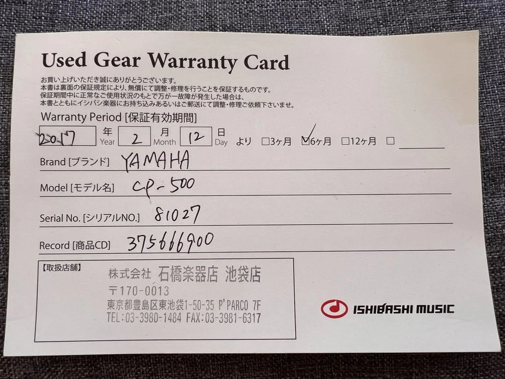 Item Title Limited Time Only Yamaha Cp-500Yamaha Acoustic Guitar Payment Supports managed payments Please pay within 5 days after auction is finished. About Us We are located in Japan. It's our pleasure to make you happy by proposing our recommend item. If you have any questions or request about items, please feel free to ask us. International Buyers - Please Note: -Import duties, taxes, and charges are not included in the item price or shipping charges. These charges are the buyer's responsibility. -Please check with your country's customs office to determine what these additional costs will be prior to bidding/buying. -These charges are normally collected by the delivering freight (shipping) company or when you pick the item up - do not confuse them for additional shipping charges. -We do not mark merchandise values below value or mark items as - gifts - The US and International government regulations prohibit such behavior. Thank you for your understanding.